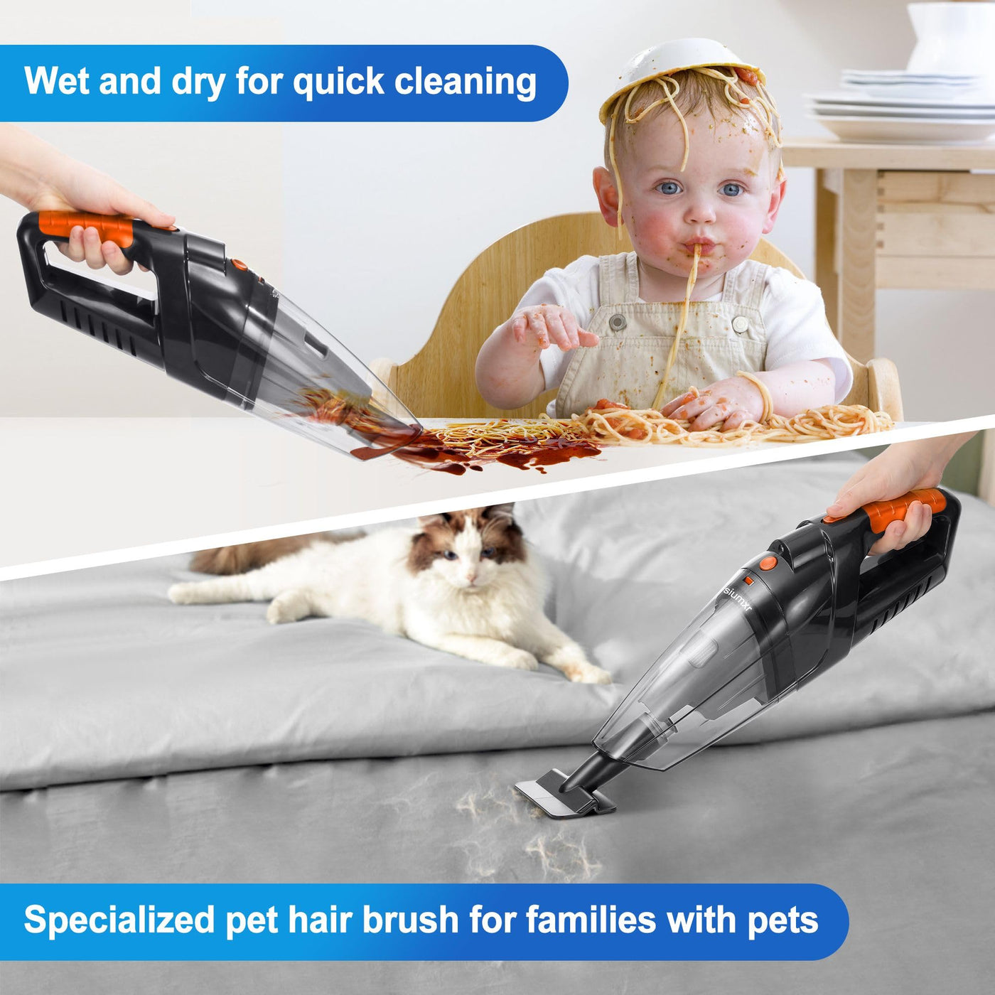 Q: Can the siumxr Handheld Vacuum clean wet messes?A: Yes, this handheld vacuum is designed for both wet and dry cleaning, making it perfect for tackling spills, pet hair, and everyday messes.