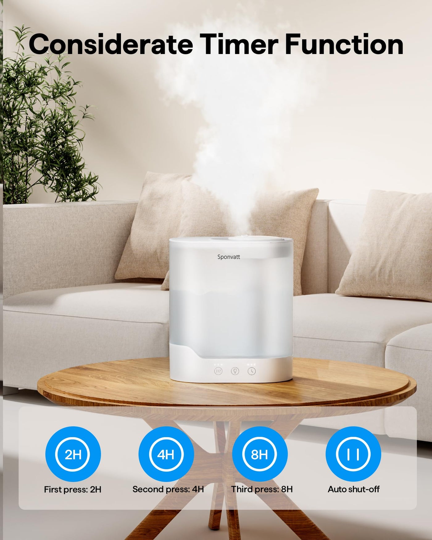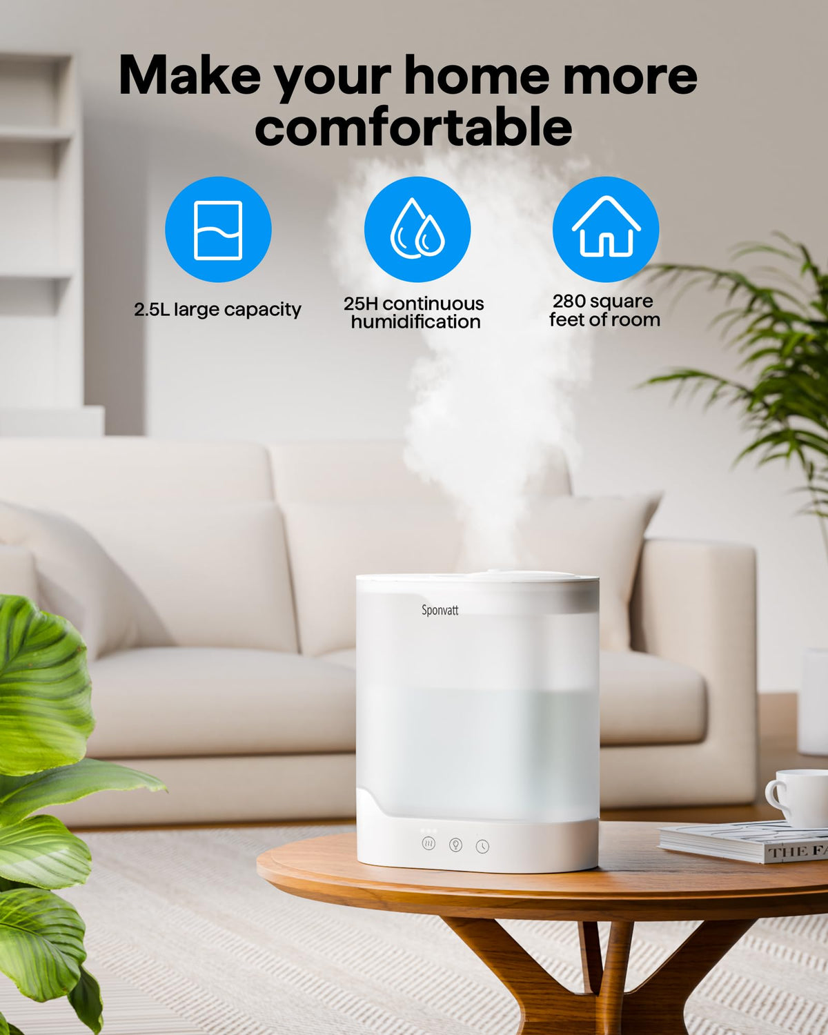 Sponvatt Humidifiers For Bedroom Home,2.5L Top Fill Cool Mist Air Humidifier For Large Room Baby Nursery,Quiet Ultrasonic,With O
