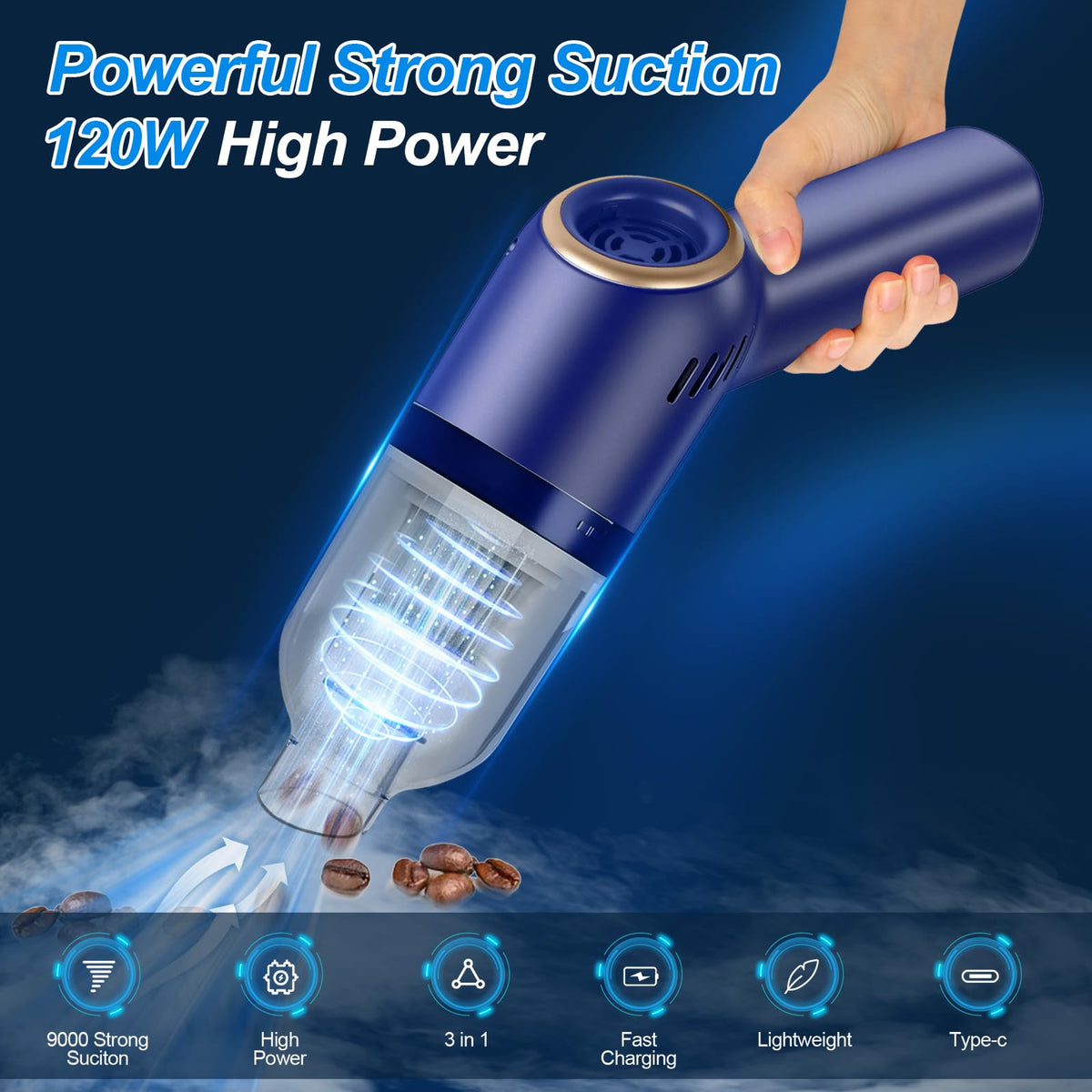 Suncandxy Handheld Vacuum Cordless: Car Vacuum Portable Cordless 120W High Power With Strong Suction Mini Vacuum 3 In 1 Portable