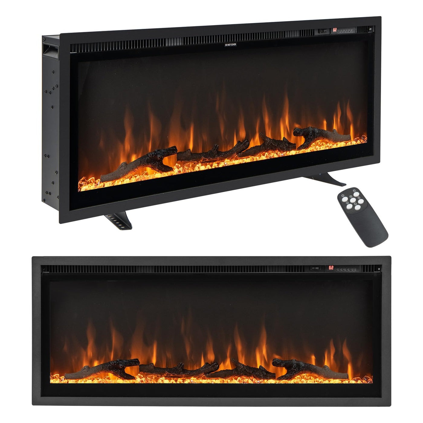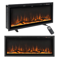 Descriptionour 36/42/50 Inches Electric Fireplace Combines Functionality, Convenience And Safety Into One Sleek And Versatile Design! With Its 750W/1500W Heating Power, This Linear Fireplace Heater Can Quickly And Efficiently Heat Up Any Room, Providing You With Cozy Comfort. One Of Its Highlights Is The Ability To Customize The Flame Color And Brightness. The Fireplace Is Allowed Convenient Control At Your Fingertips With The Remote Control Provided Within 20 Ft Effective Control Distance. Safety Is Also A Top Priority With The Overheating Protection Feature, Which Automatically Shuts Off The Fireplace If It Becomes Too Hot. And It Accepts 3 Ways To Assemble: Recessed, Wall-Mounted And Freestanding.Feature3 Installation Options: Recessed, Wall Mounted And Freestandingavailable In 9 Flame Colors And 5-Level Flame Brightness62?-82? Thermostat And 1H-8H Timer For Energy-Saving5000 Btu Heat Output For 500 Sq Ft Heating Coverageoverheating Protection And Etl Certification For All-Around Protectioncreate A Quiet Environment With =35Db Low-Noise Operationrequire 2 X Aaa Battery (Not Included)Please Press The Main Switch Button To The On Position Before Usingwe Recommend 11.8 Inches Of Space Between Your Fireplace And Tvplease Keep A Distance Of 2.5 Between The Air Inlet And The Wallplease Follow The Instructions To Maintain A Safe Distancespecificationcolor: Blackmaterial: Metal, Tempered Glass, Resin, Plasticdimension: 42 X 5.6 X 17.7 (W X D X H)Length Of Power Cord: 6 Ftnet Weight: 45 Lbsvoltage: 120Vfrequency: 60Hzpower: 750W/1500Wamp: 12.5Abtu: 5000 Btuheating Coverage: 500 Sq Fteffective Control Distance: 20 Ftbattery Required: 2 X Aaa Batteries (Not Included)Package Includes:1 X Electric Fireplace1 X Remote Control1 X Metal Bracket2 X Stand Feet1 X Instruction