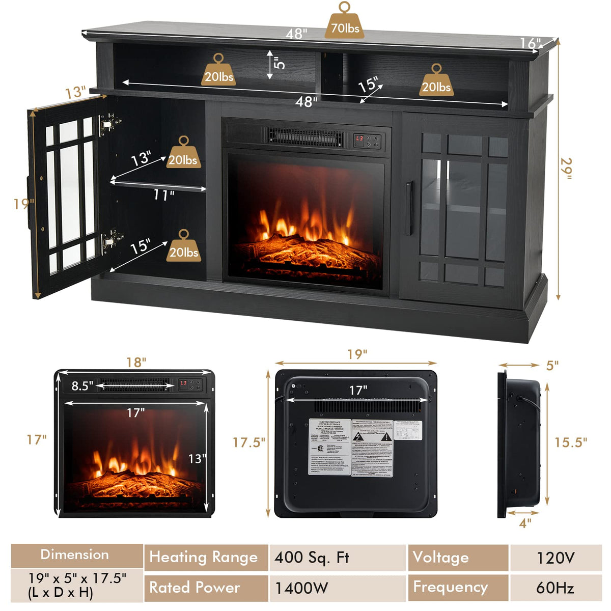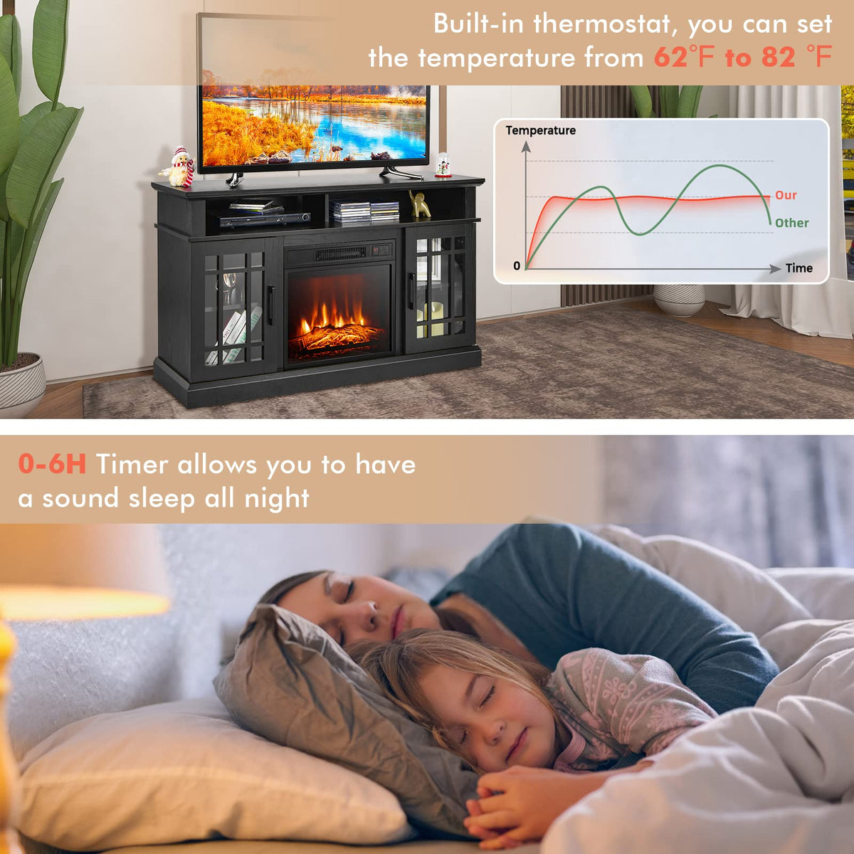Tangkula Fireplace Tv Stand For Tvs Up To 55 Inch, With 18 Inches 4777 Btu Fireplace Insert, 3 Level Brightness, Overheat Protec