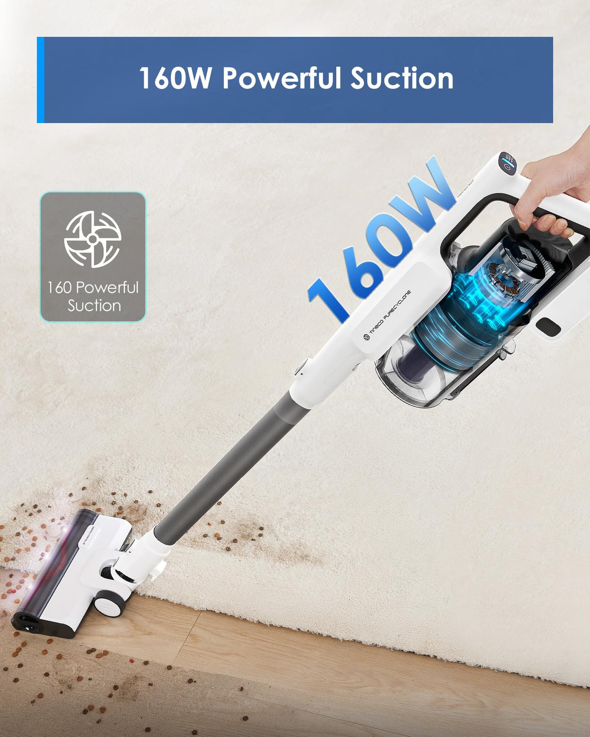 Tineco A30S Cordless Stick Vacuum Cleaner, 160W Suction, 60Min Runtime, 1L Larger Dustbin, Zerotangle Brush,Tineco Purecyclone Tech, Led Headlight, Lightweight, Hard Floor And Carpet