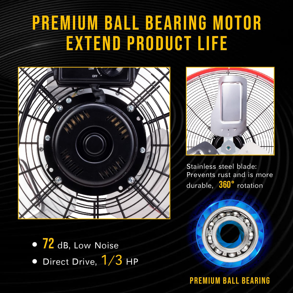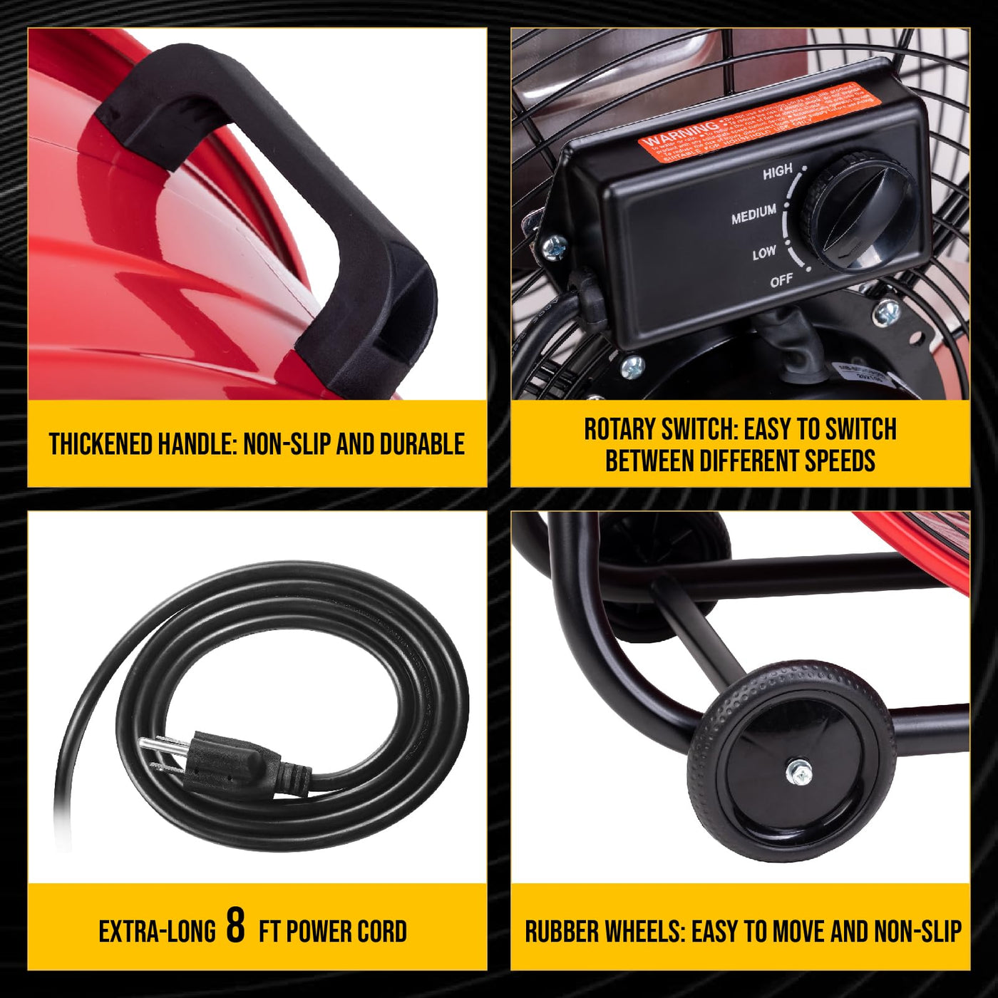 Tornado 24 Inch High Velocity Heavy Duty Tilt Metal Drum Fan Wide Version Red Commercial, Industrial Use 3 Speed 8800 Cfm 8 Ft
