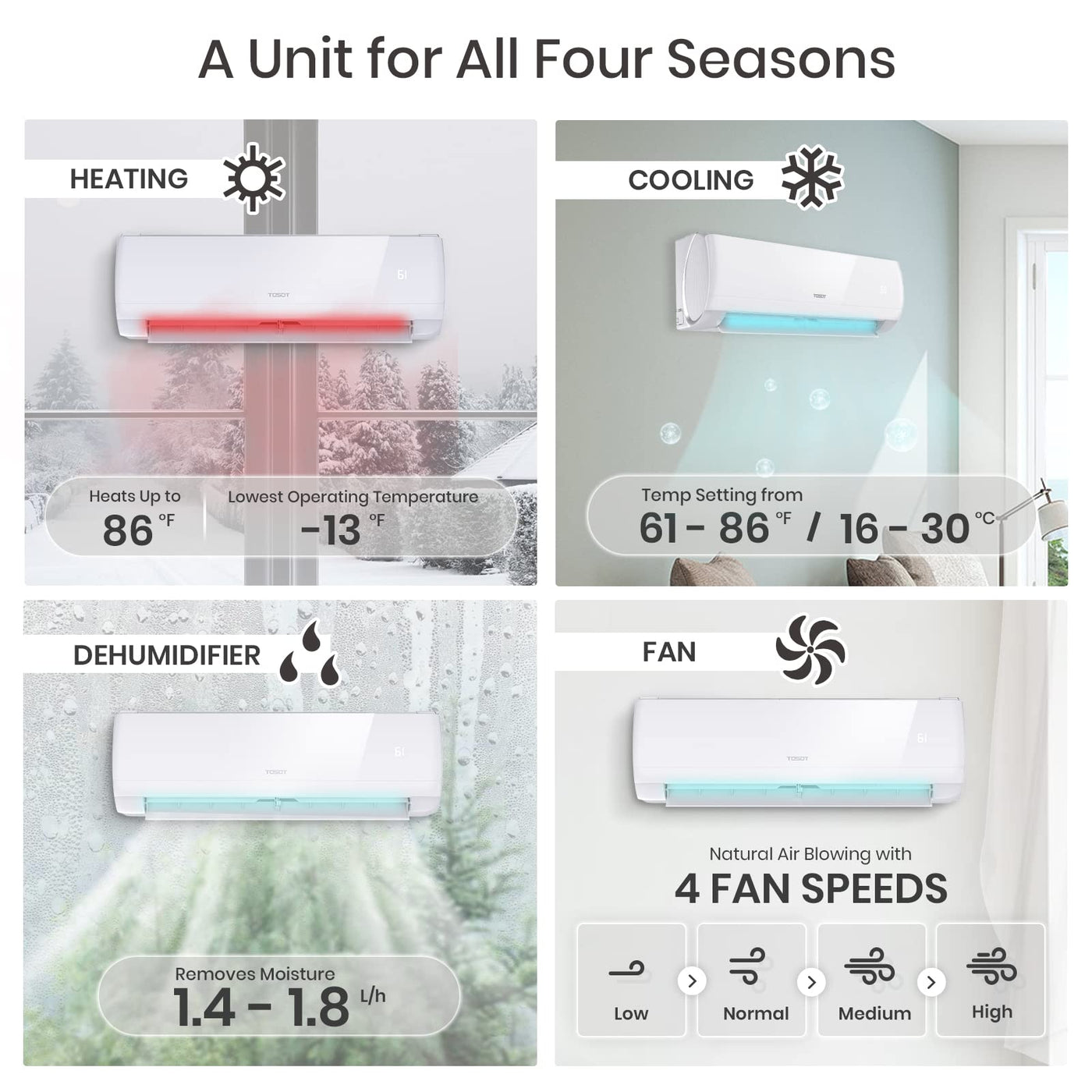 Tosot 9,000 Btu Mini Split Air Conditioner, Wifi Enabled Ductless Inverter Split System Ac Unit Heating System, Compatible With