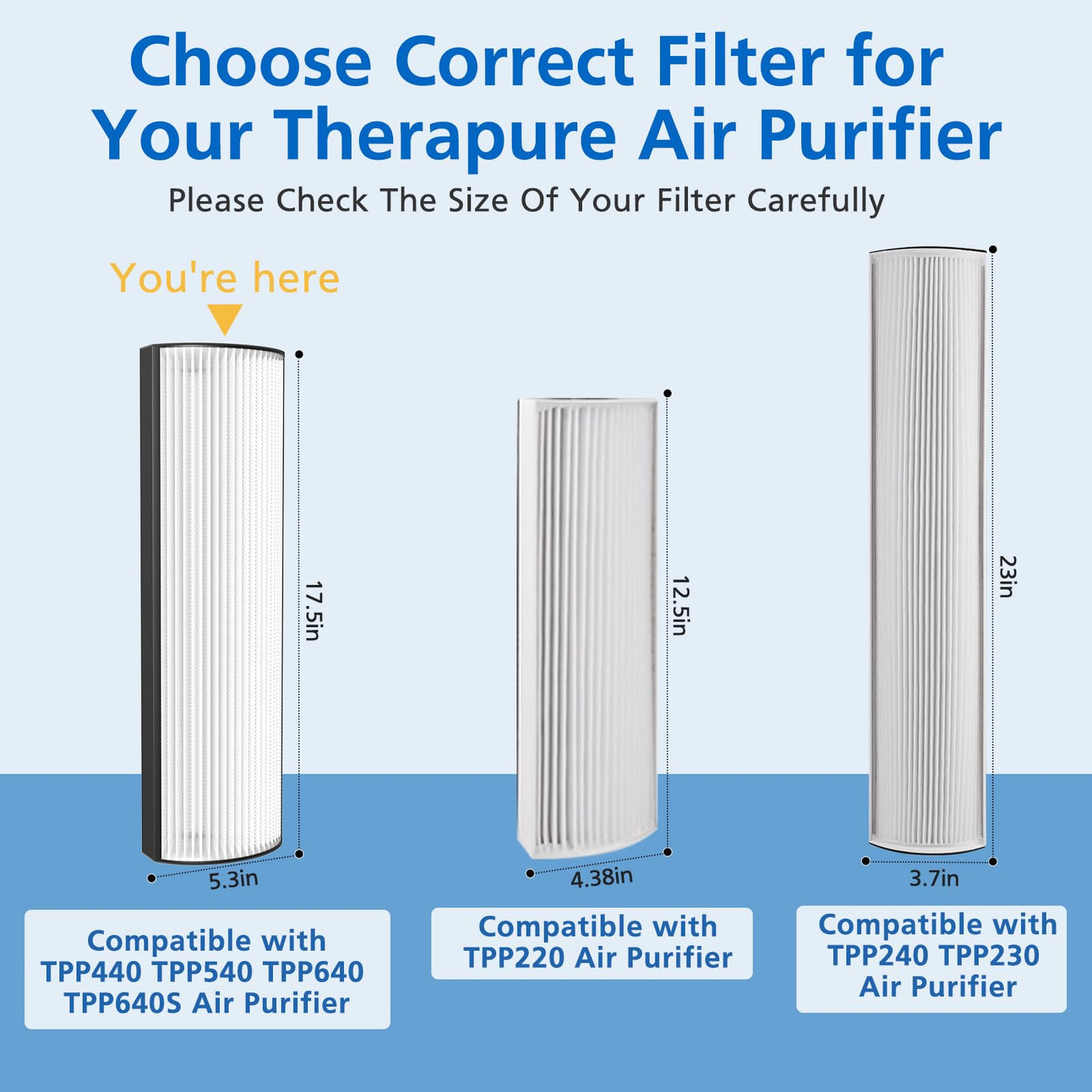 Why Choose Us?Our Mission Is To Provide Good Products And Services To Our Customers And Improve The Health And Wellness Of Our Community With Purified Air While Allowing Everyone To Get Tangible Benefits.Product Details1) Compatible Models: Perfect Fit For Envion Therapure Tpp440 Tpp540 Tpp640 Tpp640S Air Purifier2) Keep Air Fresh And Clean: The Therapure Tpp440 Tpp540 Tpp640 Tpp640S Air Purifier&Nbsp;&Nbsp;Is High-Efficiency 4-In-1 True Hepa Filtration Systems. True H13 Replacement Filter Can Effectively Attach 99.97% Of All Airborne Particles Down To 0.3 Microns In The Air Like Dust, Hairs, Pet Fur, And Lint. And The Pleated Filter Media Increases The Capture Area While Maintaining Good Airflow Through The Filter.&Nbsp;The High-Grade Activated Carbon Filter Can Efficiently Absorb Unwanted Odors, Fume, Smoke, And Cooking Smells, As Well As Filter Pet Odors In Your Living Space For Improved Air Quality, Ideal For Pet Owners, Smokers, And People Who Live In Cities.3) Valuable Packages: Consists Of 2 Therapure Replacement Filters Saves A Lot Of Money For Your All-Year-Round Air Cleaning Needs. Higher Level Filtration Performance For Long Time Use, Recommended To Replace Filters Every 3 To 6 Months. Using An Old Filter Lowers Your Air Purifiers Efficiency.4) Easy To Install: The Replacement Filter For&Nbsp;Therapure Air Purifier Is Easy To Replace And Disposable, No Tools Are Required. For Optimum Performance, It Is Recommended To Change The Filter Regularly Every 3 To 6 Months So As To Keep The Purifying Performance.The Therapure Tpp440 Tpp540 Tpp640 Tpp640S Air Purifier Filter Replacement Cleans Every Corner For You To Provide The Cleanest And Most Comfortable Environment.