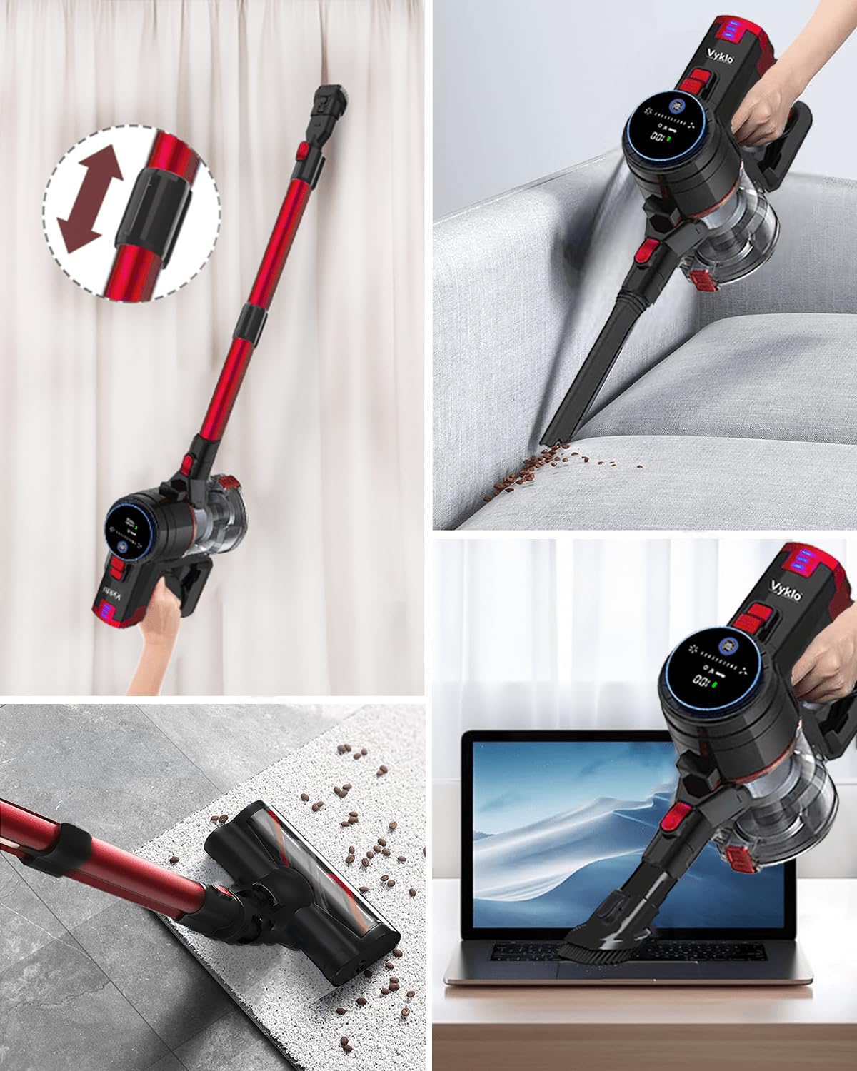 The Vyklo Cordless Vacuum Cleaner Vacuum Stick Is The Perfect Solution For Busy Homeowners Who Want To Keep Their Homes, Workspaces And Offices Clean. The Lightweight Design Makes It Easy To Maneuver Around Furniture And Under Beds, And The Powerful Suction Power Easily Picks Up All Kinds Of Mess On Both Carpets And Hard Floors.