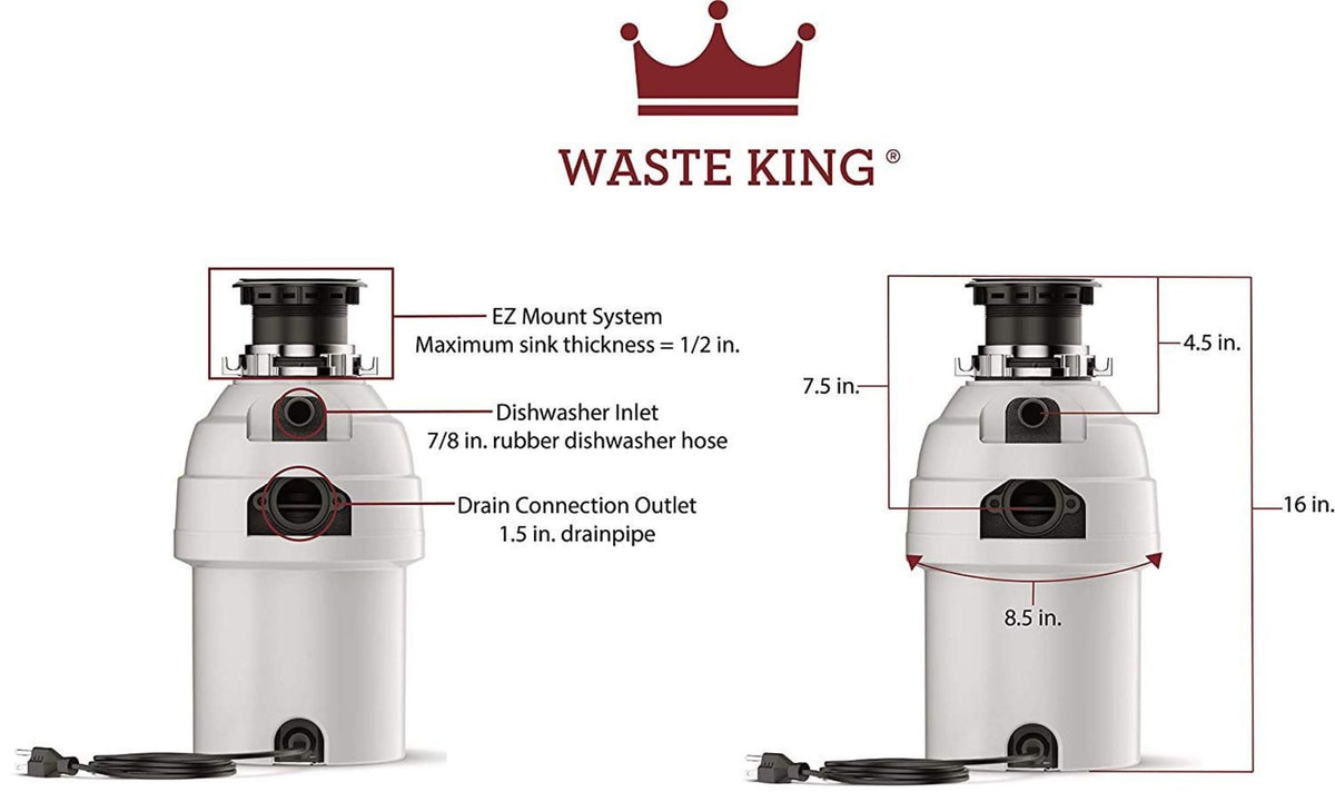 Waste King 1 Hp Garbage Disposal With Power Cord, Food Waste Disposer For Kitchen Sink, L 8000