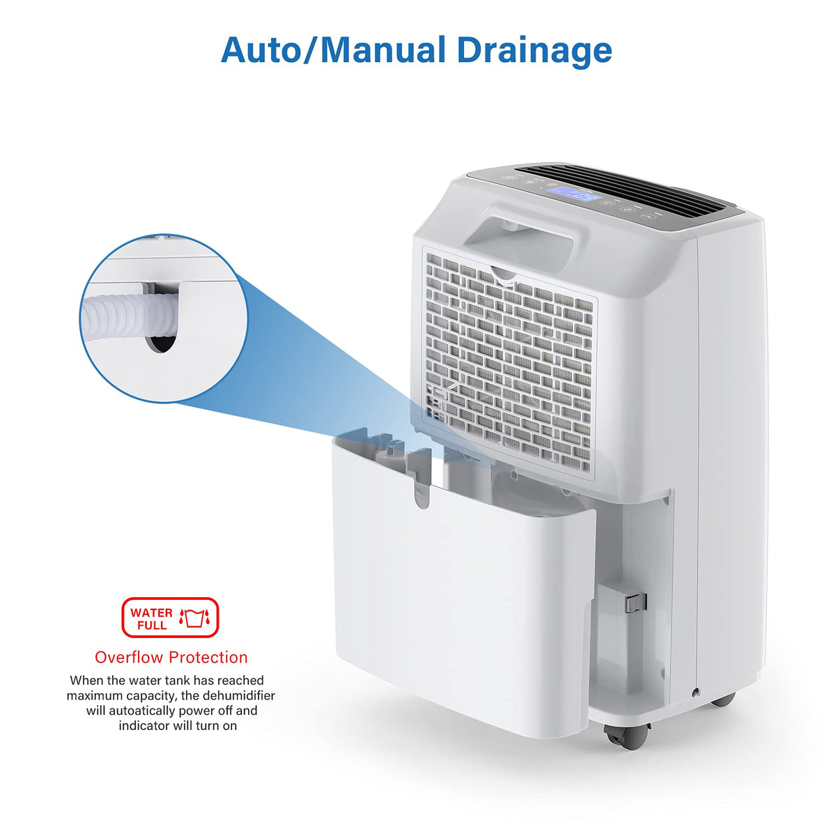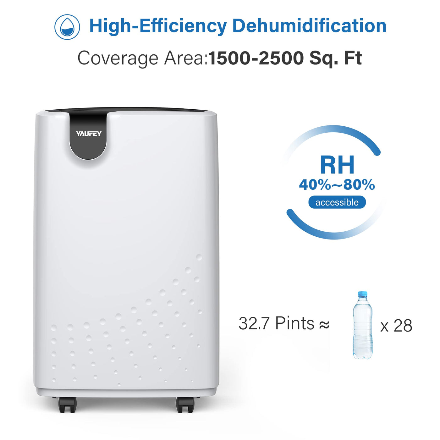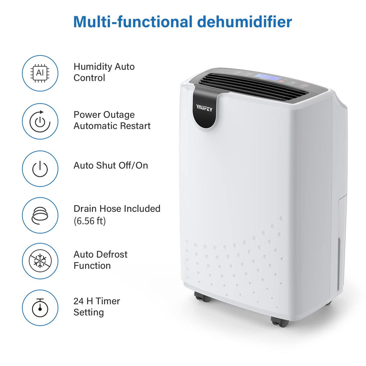 Yaufey 2500 Sq. Ft Home Dehumidifier For Medium To Large Rooms And Basements With Auto Or Manual Drainage, 0.48 Gallon Water Tan