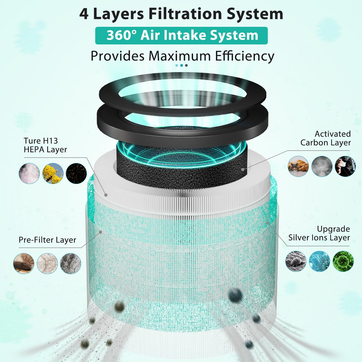 Q: What air purifiers are compatible with the MK06 MK01 True HEPA Replacement Filter?A: The MK06 MK01 True HEPA Replacement Filter is compatible with AROEVE MK01, MK06, MG01JH, ToLife TZ-K1, POMORON MJ001H, Kloudi DH-JH01, Intelabe EPI080/EP1080, and Elechomes EPI081/EP1081 air purifiers.