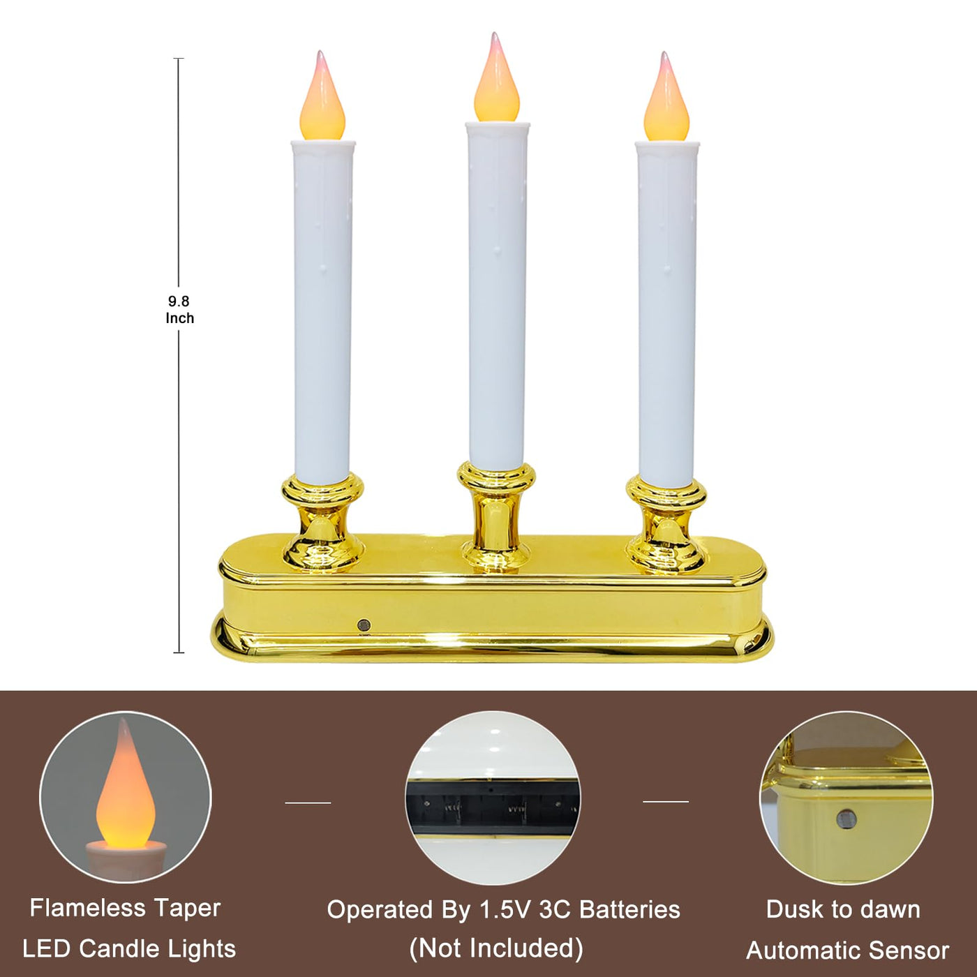 3 Light Battery Operated Christmas Window Candles With Sensor Dusk To Dawn, Cordless Flameless Flicker Taper Lights