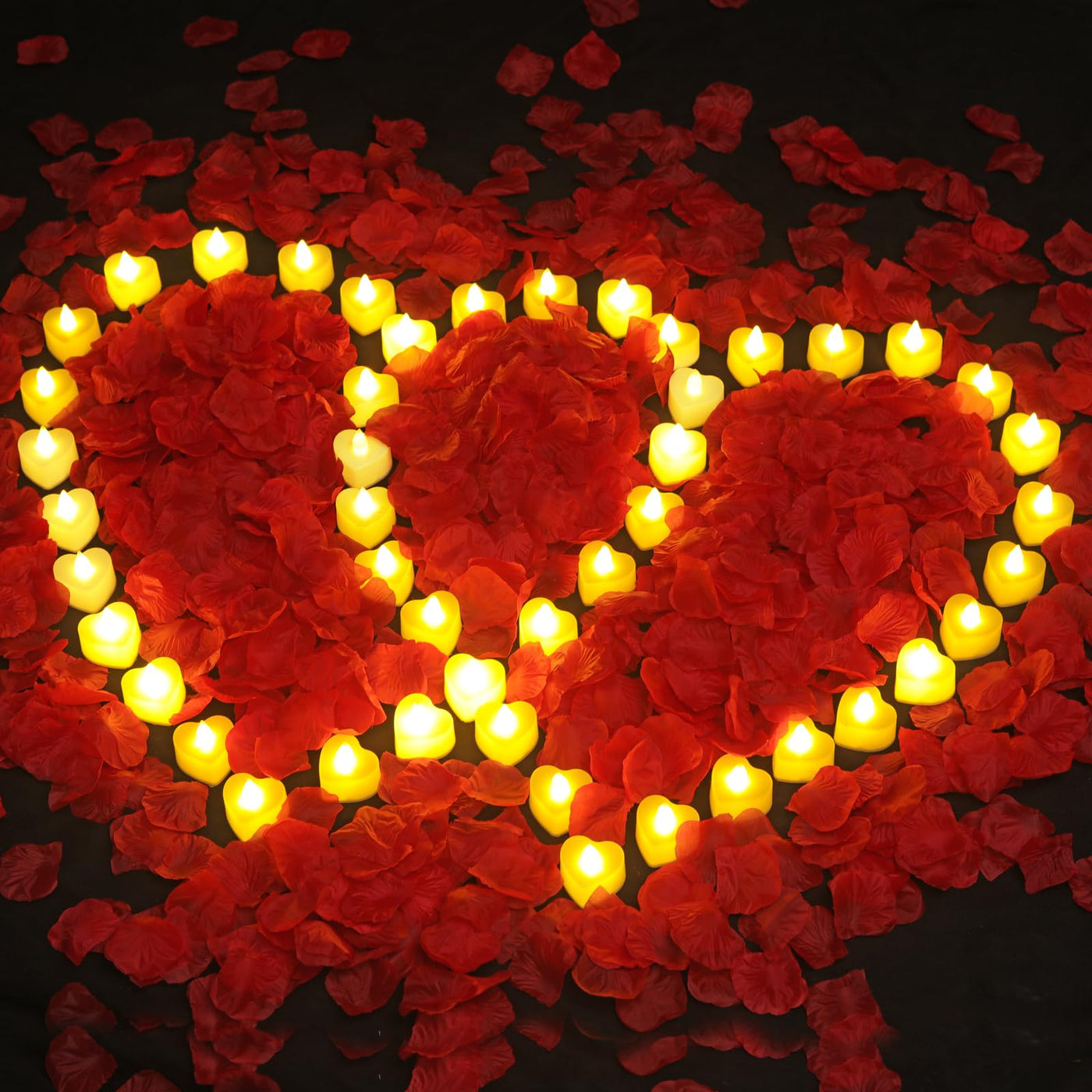 6000 Pcs Artificial Rose Petals With 72 Pcs Romantic Flameless Candles, Led Heart Tea Lights Battery Operated For Valentine'S Da