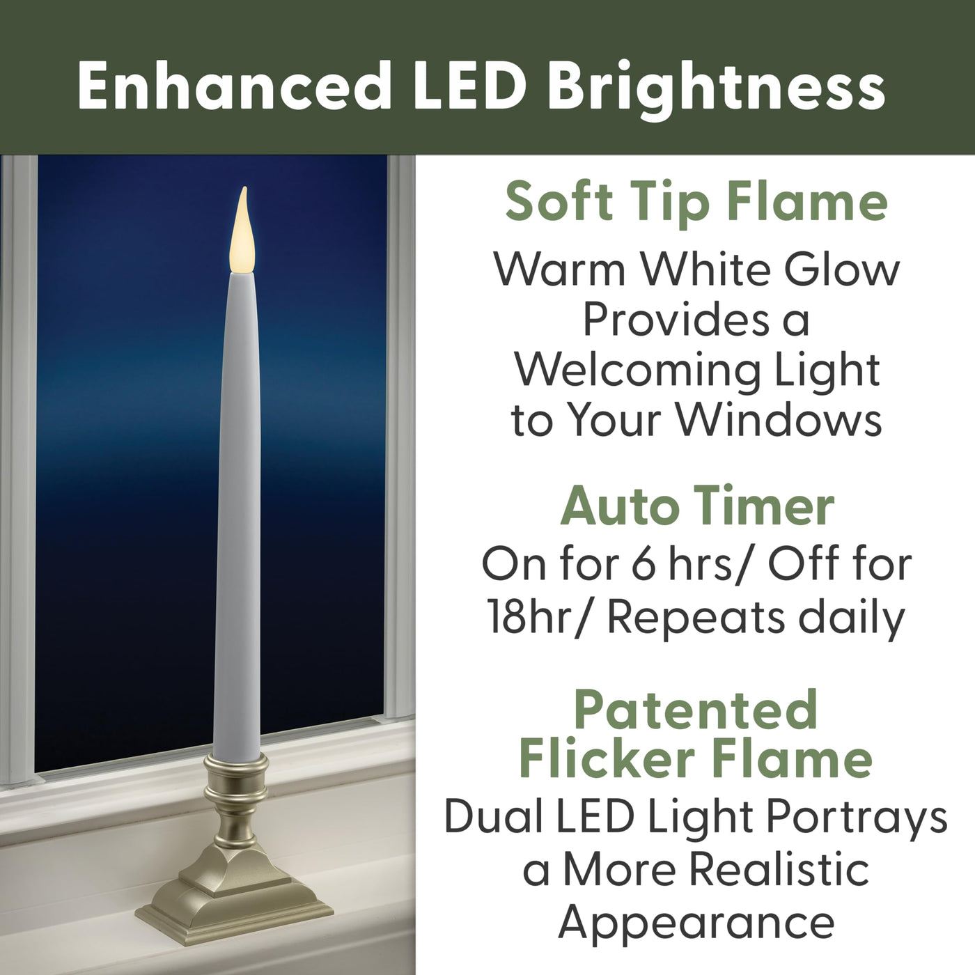 612 Vermont Battery Operated Led Taper Window Candles With Timer (6 On/18 Off), Patented Warm White Dual Led Flicker Flame, Vt 1