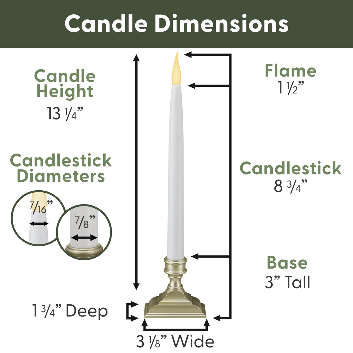 At 612 Vermont We Have Partnered Up With Leaders In The Window Candle Market To Bring You Many High Quality Options To Choose From. Many Of Our Candles, Including This One Feature A Patented Flame That Distinguishes Them From The Run Of The Mill Window Candle. The Flickering Flame Features A Steady Burning Led At The Base Of The Flame, While The Led At The Tip Of The Flame Flickers On And Off To Create A Realistic Flame Look. The Candle Operates On 3 Aa Batteries (Not Included). 70 Days Of Battery Life On 1 Set Of Batteries. Batteries Install In The Candlestick To Provide A Sleek Look That Is Presentable On Tabletops As Well As On Your Windowsills. Once You Insert The Batteries And Screw On The Cap The Candle'S Auto Timer Will Turn The Candle On For 6 Hours Then Turn Off For 18 Hours. Cycle Will Repeat Daily. The Base Of The Candle Is Weighted To Prevent Tipping Of The Candlestick. Measures: 13 1/4 Tall, 3 1/8 Wide, 1 Deep. Candlestick Diameter: 7/8 .