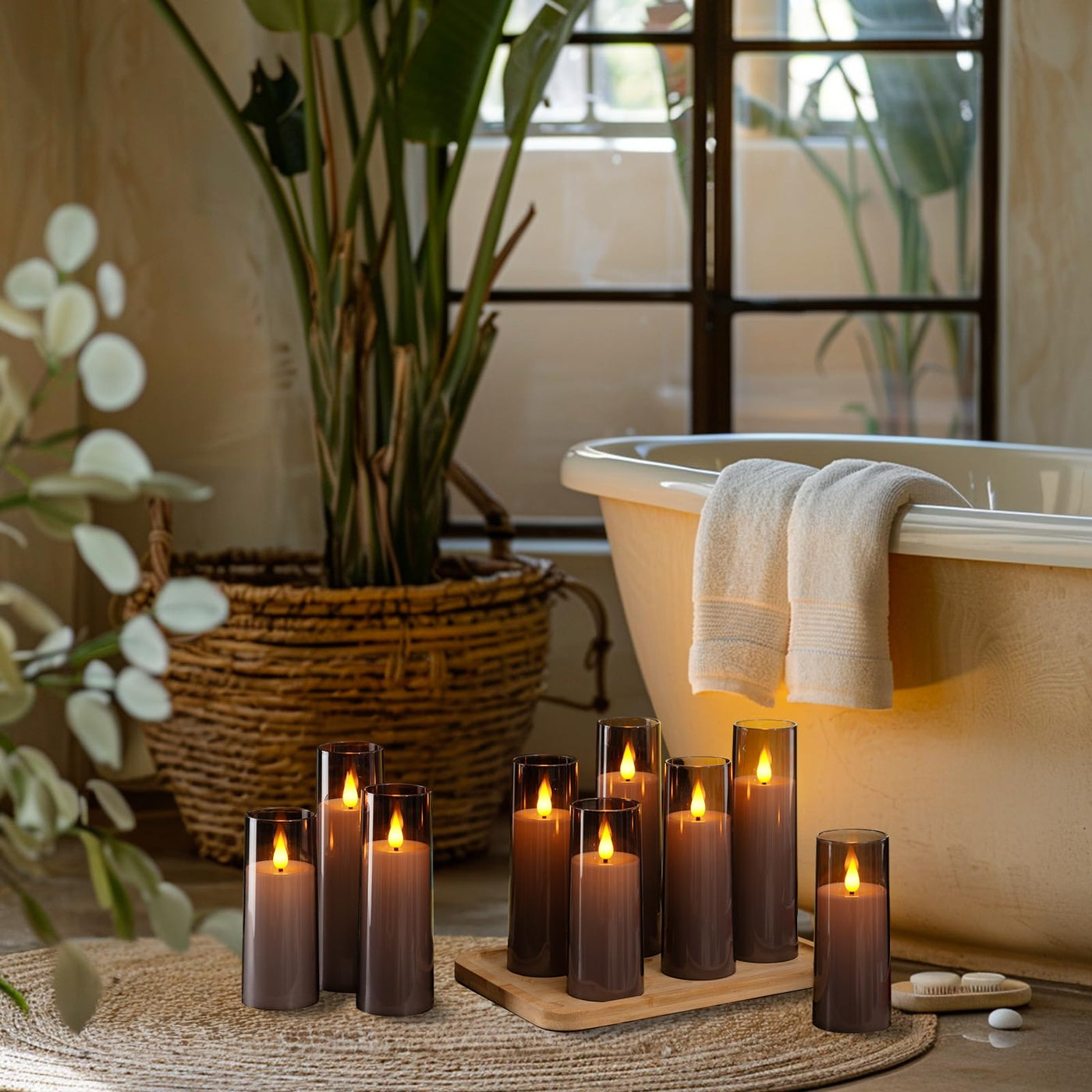 Amagic Grey Flameless Candles 9 Set, Battery Operated Candles With Remote Control And Timer, Flickering Led Pillar Candles For H