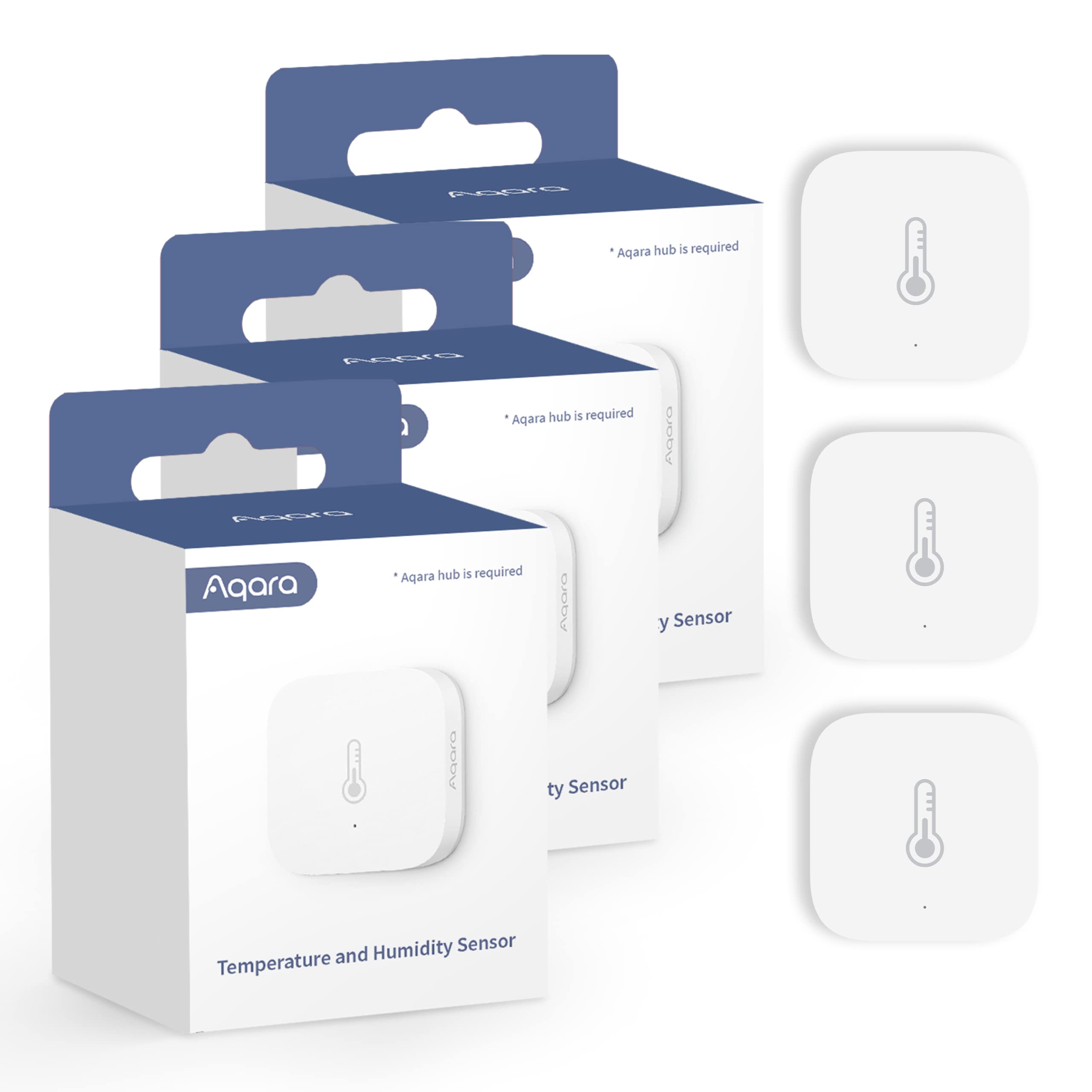 Aqara Temperature And Humidity Sensor- 3 Pack, Requires Aqara Hub, Zigbee, For Smart Home Automation, Wireless Thermometer Hygrometer, Compatible With Apple Homekit, Alexa, Works With Ifttt