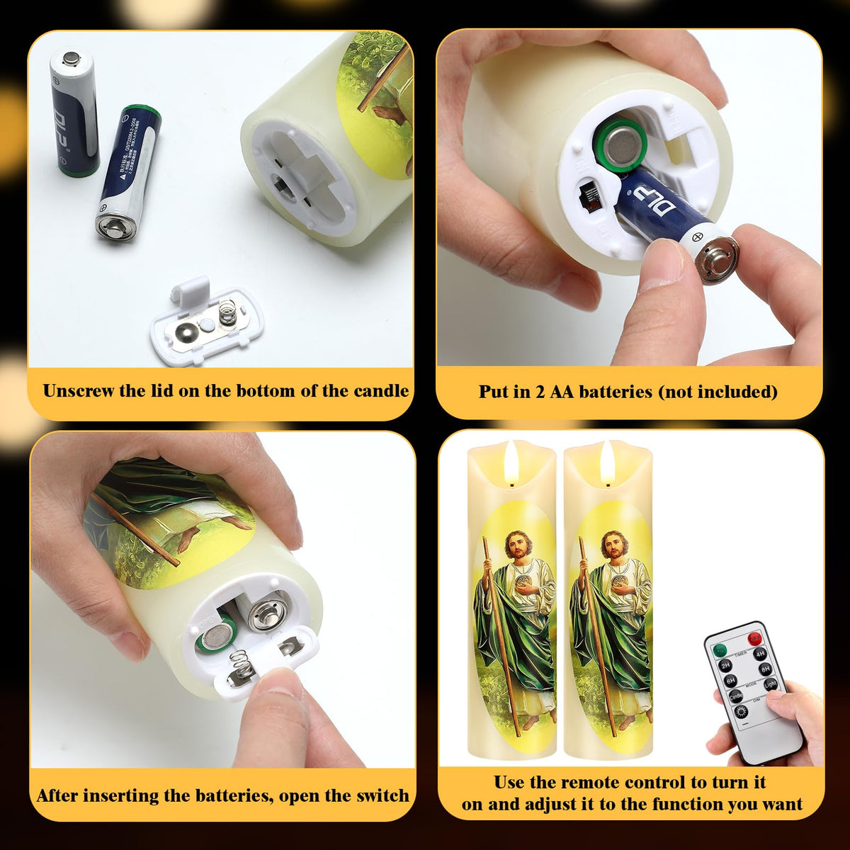 Baquler 2 Pcs Religious Flameless Led Prayer Candle Real Wax Baptism Set Devotion Candles Religious Decoration Gift For Home And
