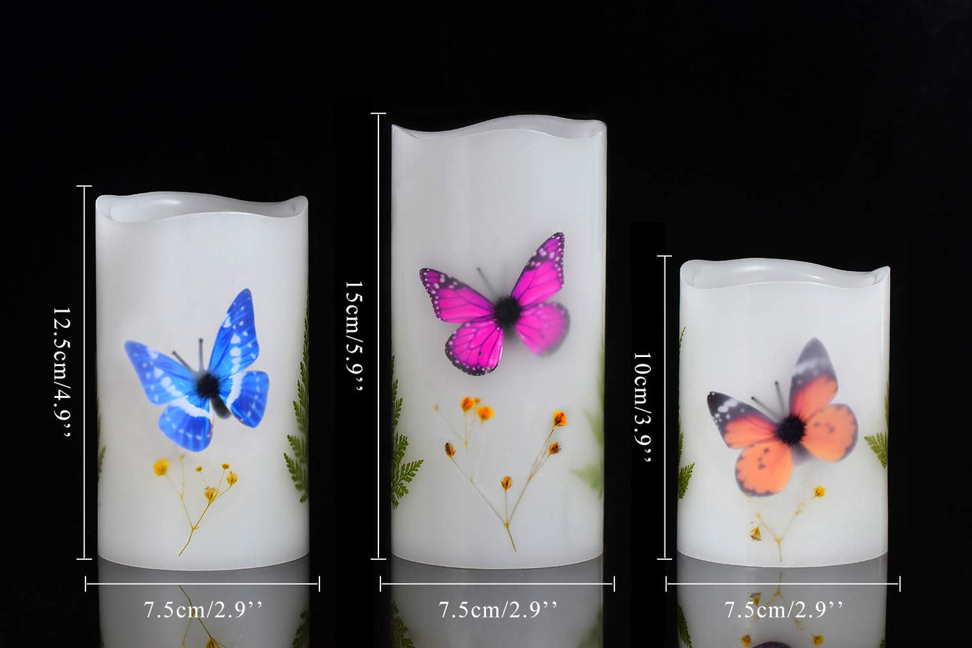 Candles Set Of 3 Flameless 4'' 5'' 6'' Unscented Tealight Butterfly Flower Plants Decor Real Wax Pillar Candle Led Lights 12 Col