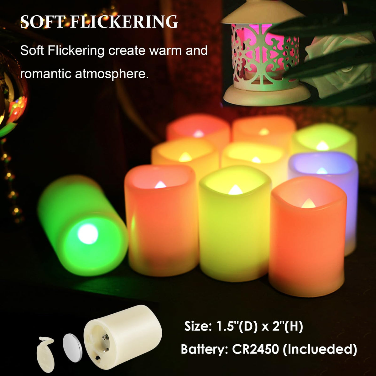 ??The Multi Colored Candles Provides Clean, Romantic,Safe And Colored Flickering Flameless Candles Without Any Mess Or Hazardous Flames; They Are Perfect For Accent Decorations For Holiday Celebrations, Wedding Ceremonies,Special Occasions Such As Birthdays And Anniversaries, Memorial Services,Church Gatherings, Diy Projects And Etc. Specifications:&Nbsp; Package Content:&Nbsp;10 Pcs Colored Flameless Pillar Candles (Battery Include) Battery Life: About 100 Hours Material: Led+Pp Size: Diameter 1.5 Inch+Height&Nbsp;2 Inch. Function:&Nbsp;Multi-Function Universal Remote Control With Timer Color: Multi Color Changing Battery Use Tip : If You Are Not Using Color Flameless Candles For A Prolonged Time, Please Switch The Battery Operated Tealights Candles Off At The Bottom To Save Battery. Keeping On Timer Do Use Battery Power.