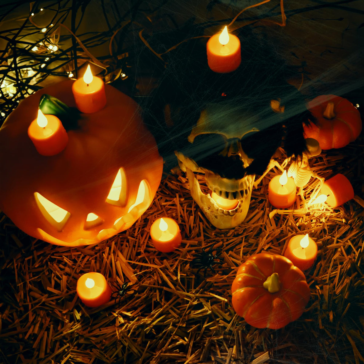 Daord 6 Pcs Halloween Orange Led Tea Light Candles Rechargeable Flickering Flameless Pumpkins Tealights With Remote For Fall Hal