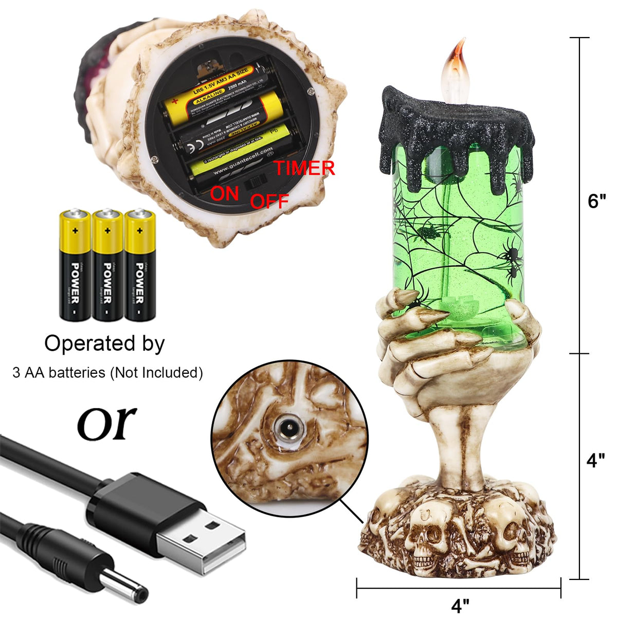 Halloween Snow Globe Candles Lighted Lamp Usb Powered Battery Operated Spooky Spinning Water Glittering Tornado Flameless Candles Skeleton Hand Holder Halloween Centerpiece Decor(Spider)