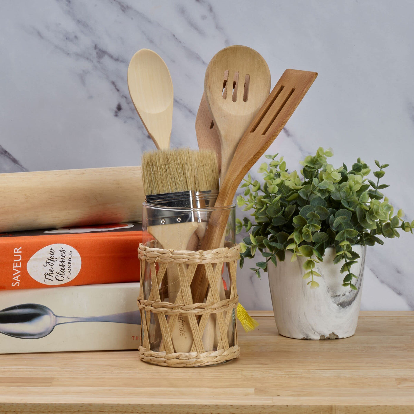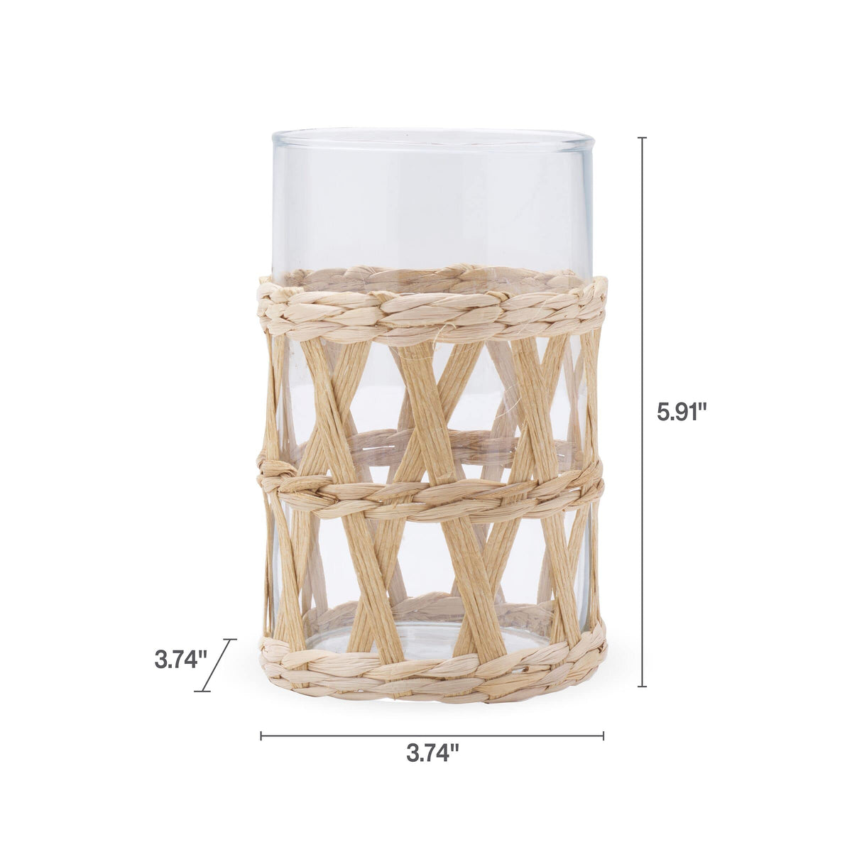 Elements 3.74X3.74X5.91 Inch Seagrass And Clear Glass Hurricane, For Use With Wax Or Flameless Candle