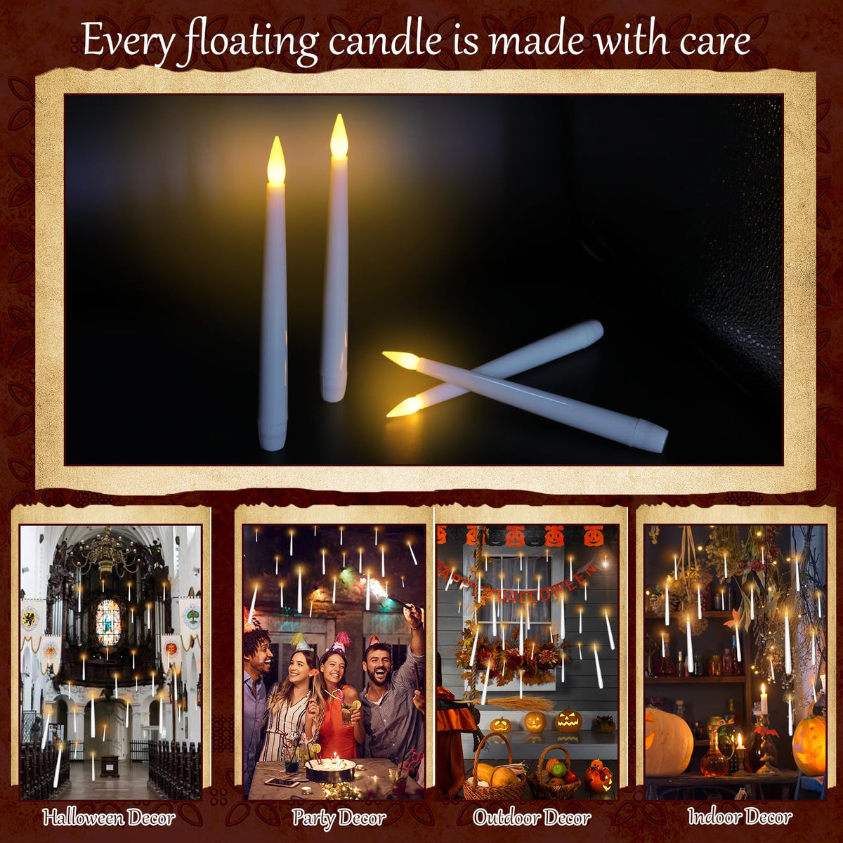 These 3D Flickering Flameless Candles Provide The Warm Ambiance Of Real Candles Without The Fire Hazard. We Have Replaced The Wax With High-Quality Plastic That Gives Better Light Transmission And Prevents Messy Drips. A Master Switch And Included Remote Let You Control The Candles Easily. An Automatic Timer Can Turn The Candles On And Off At Set Times For Added Convenience And Energy Efficiency. 3 Candle Sizes: D: 2.2 H: 5 6 7 500+ Hours Of Battery Life (Batteries Not Included) Master Switch And Two 10-Key Remotes For On/Off And Mode Control Automatic Timer (Loops Daily) Two Light Modes: Constant On Or Flickering Candlelight Safety Tested - No Fire Hazard, No Messy Wax Package Includes 9 Led Candles And 2 Remotes