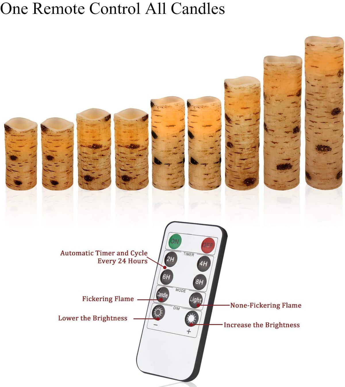 Enpornk Flameless Flickering Candles With Birch Bark Effect Led Candles 4''/5''/6''/7''/8''/9'' Set Of 9 Battery Candles Real Wa