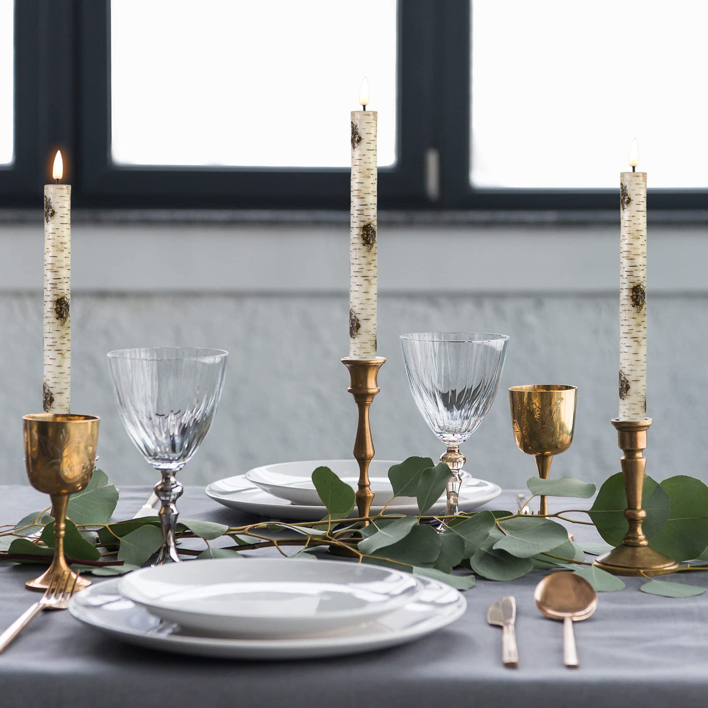 Eywamage Birch Bark Led Taper Candles With Remote, Battery Operated Wood Candles, Led Wax Candlesticks Set Of 6