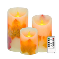 Flameless Candles Lights, Set Of 3 Maple Leaf Flickering Led Candles With Remote & Timer, Dimmable Led Pillar Candles Battery Op