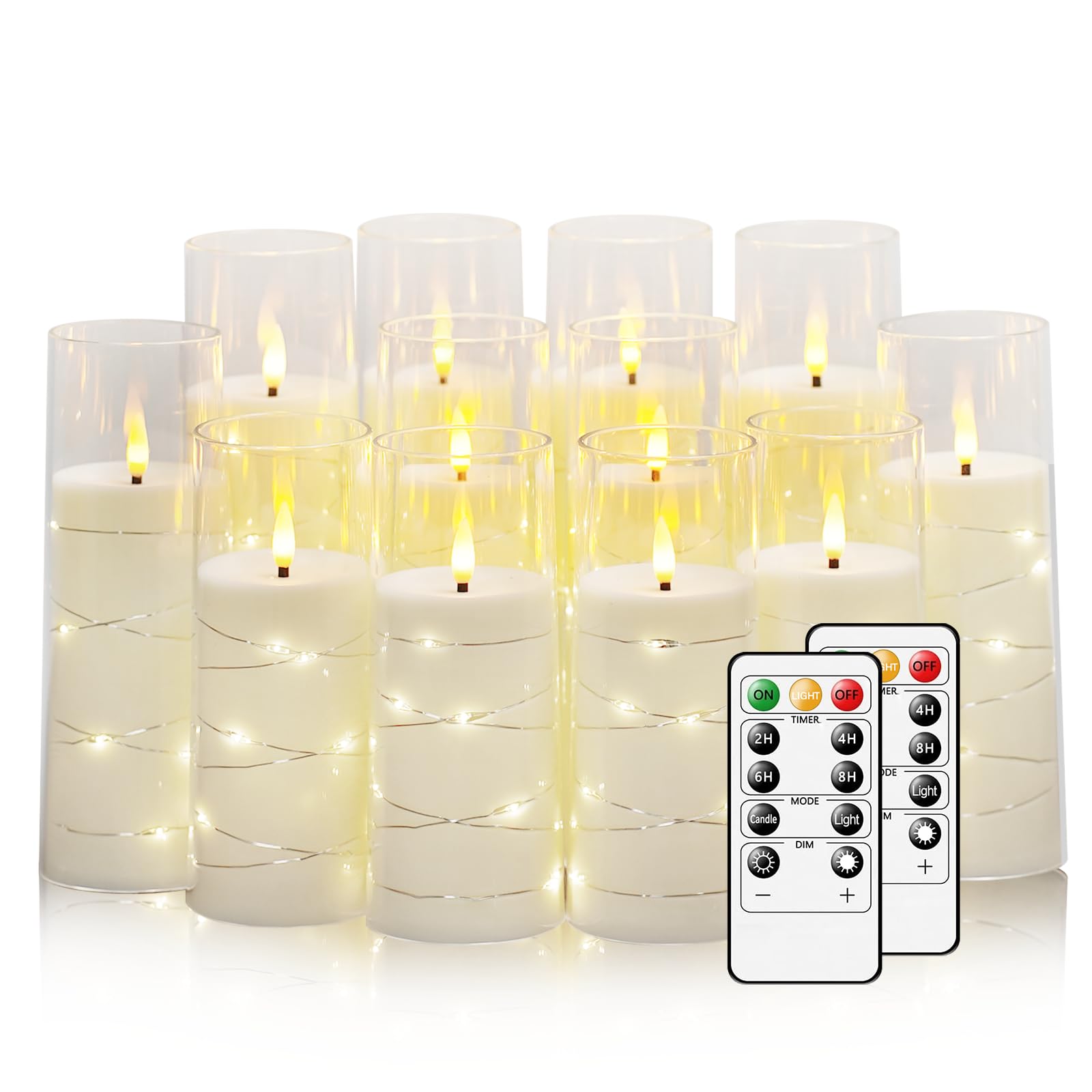 Flameless Candles With Embedded Star String, 12 Pcs Battery Operated Led Pillar Candles With Remote And Timer, Suitable For Home