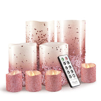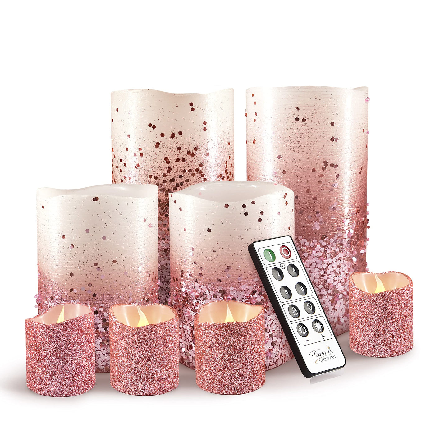 Furora Lighting Pink Glitter Led Candles With Remote And Timer, 4 Pillars And 4 Votives Pack Of 8, Real Wax Flameless Flickering