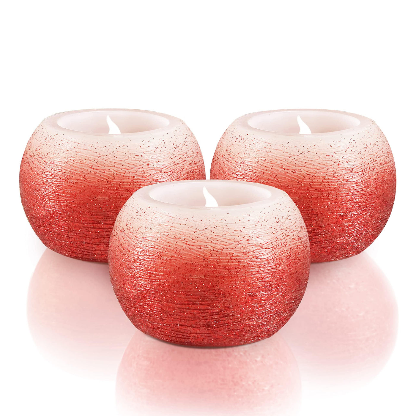 Furora Lighting Small Red Glittery Real Wax Flameless Candles, Pack Of 3 - Led Flickering Small Round Candles, 2.4 X 1.6 ,