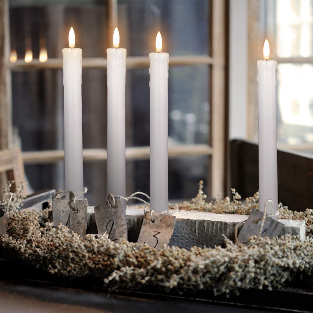 Genswin Drip Wax Flameless Taper Candles Flickering With 10-Key Remote, Battery Operated Led Warm 3D Wick Light Window Candles Real Wax Pack Of 6, Christmas Home Wedding Decor(White, 0.78 X 9.64 Inch)