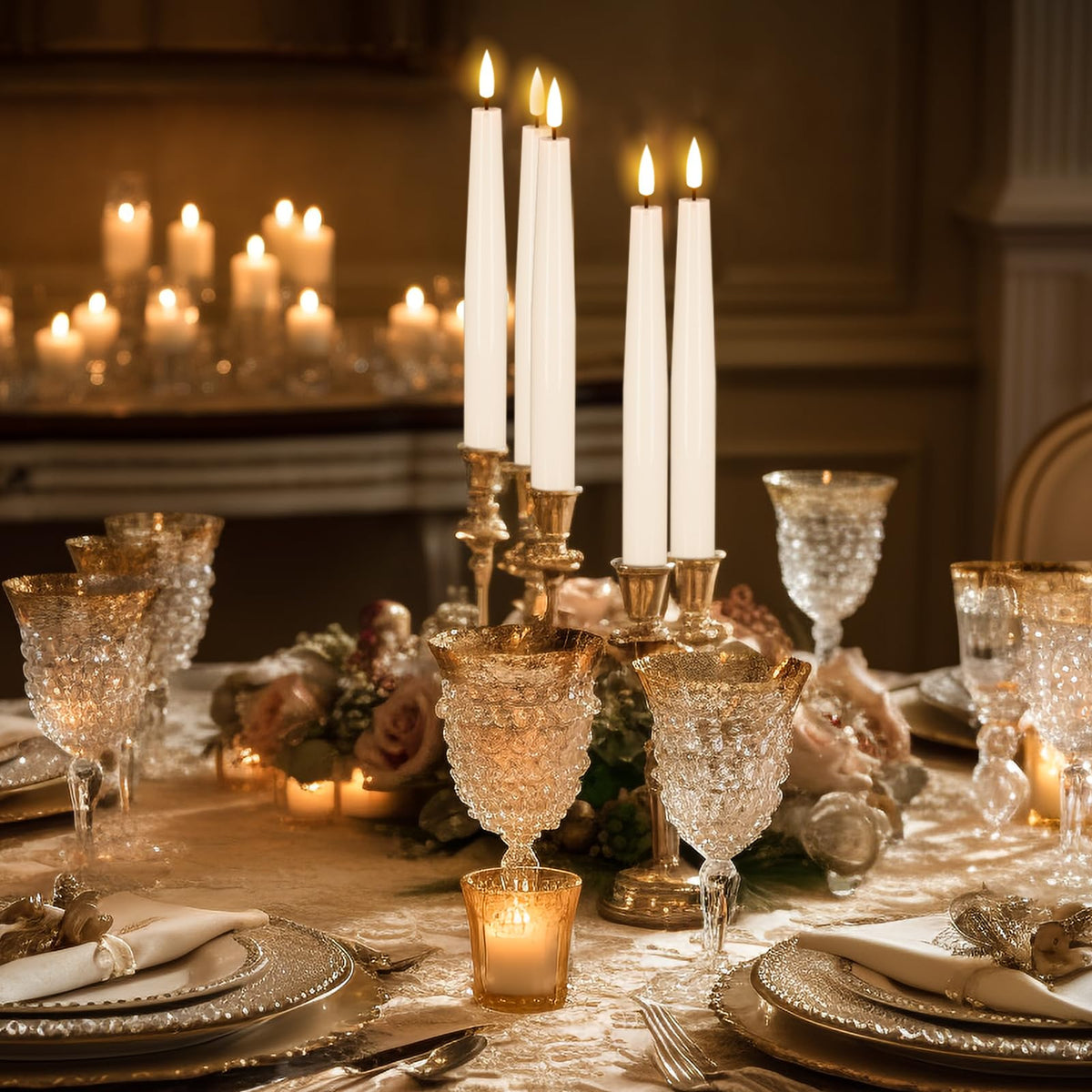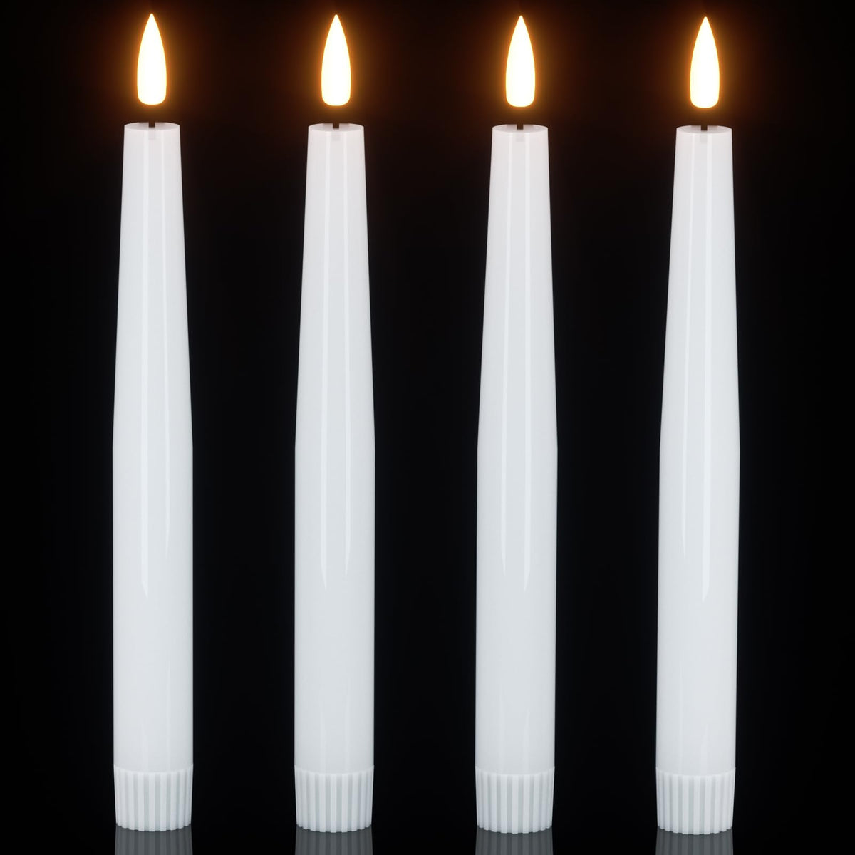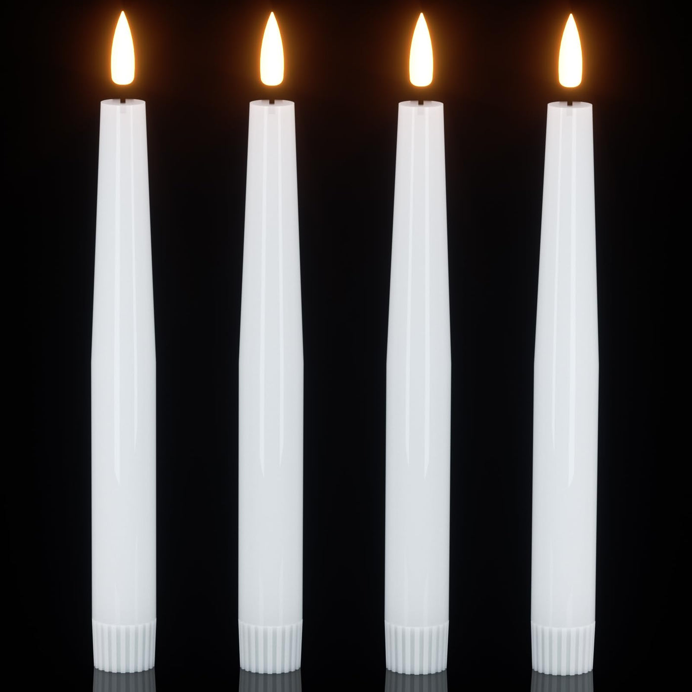 Q: How realistic do the flickering flames look on these LED candles?A: The GenSwin flameless taper candles feature a realistic 3D flickering flame design that closely mimics the look and feel of real candles. This natural flickering warm light creates a cozy atmosphere, perfect for any occasion.