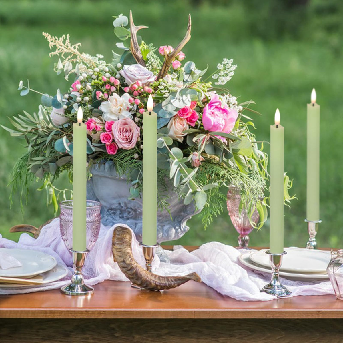 Genswin Flameless Green Taper Candles Flickering With 10 Key Remote, Battery Operated Led Warm 3D Wick Light Window Candles Real