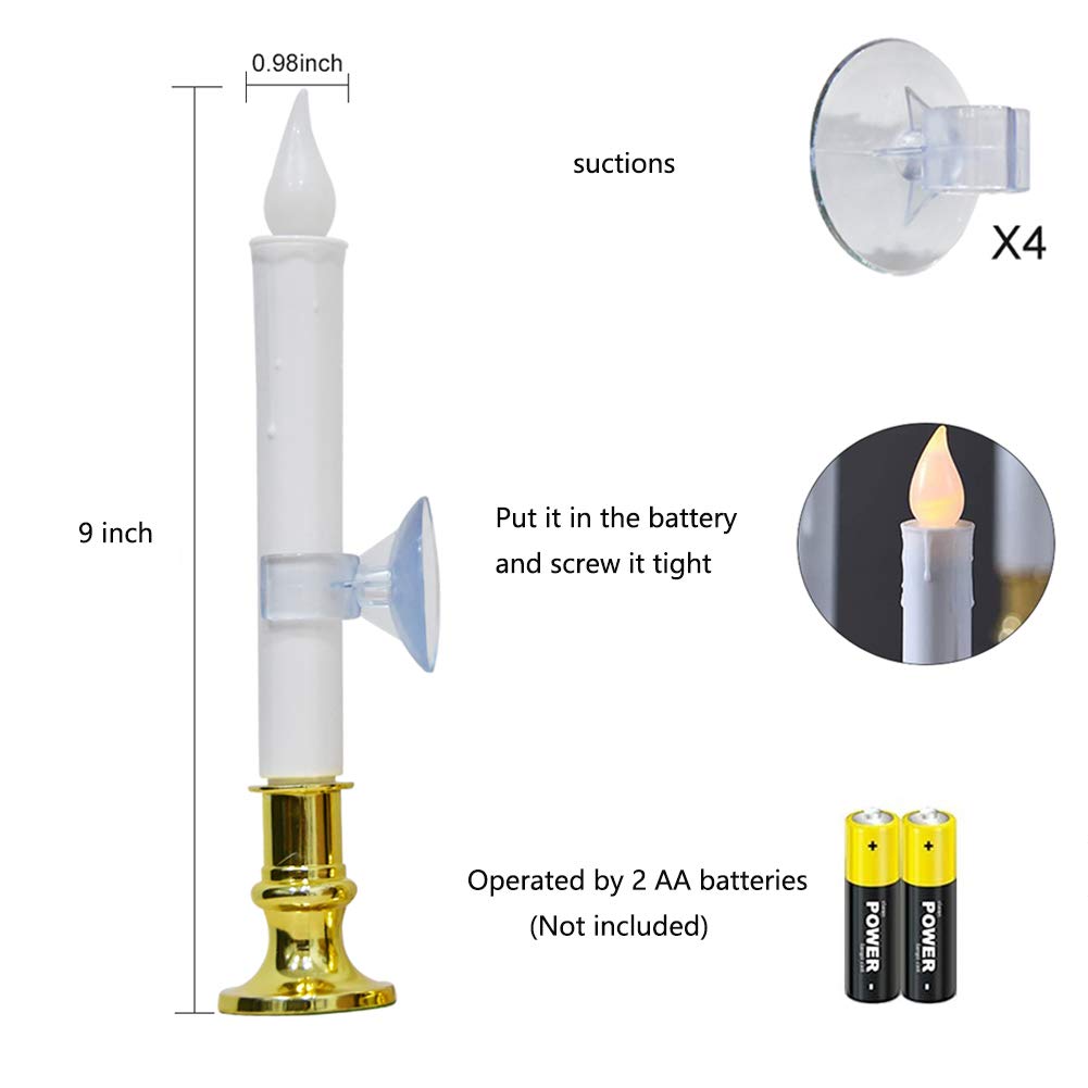 Specifications: Color: White Quantity: 1Pack Of 4 Holders: Gold Holders Light Type: Flickering Holder Diameter: 1.75 Inches With Holder Height: 9 Inches Battery: 2 Aa Batteries(Not Included) Suction Cups: Yes Remote Included:No Automatic Timer: Yes Remote Functions: On / Off If You Have Any Quality Problems, Please Dont Hesitate To Contact Us!