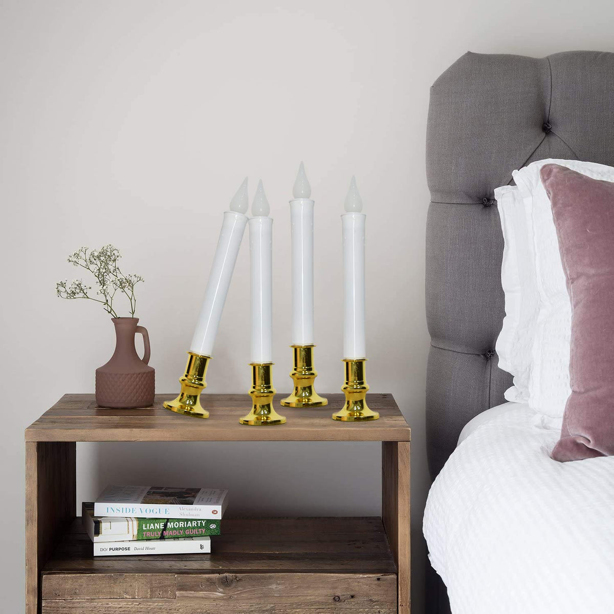 Goothy Christmas Window Candles Lights, Automatic Timer Led Flickering Candles Lights With Gold Base (6/18 Hour Timer), 9'' Led