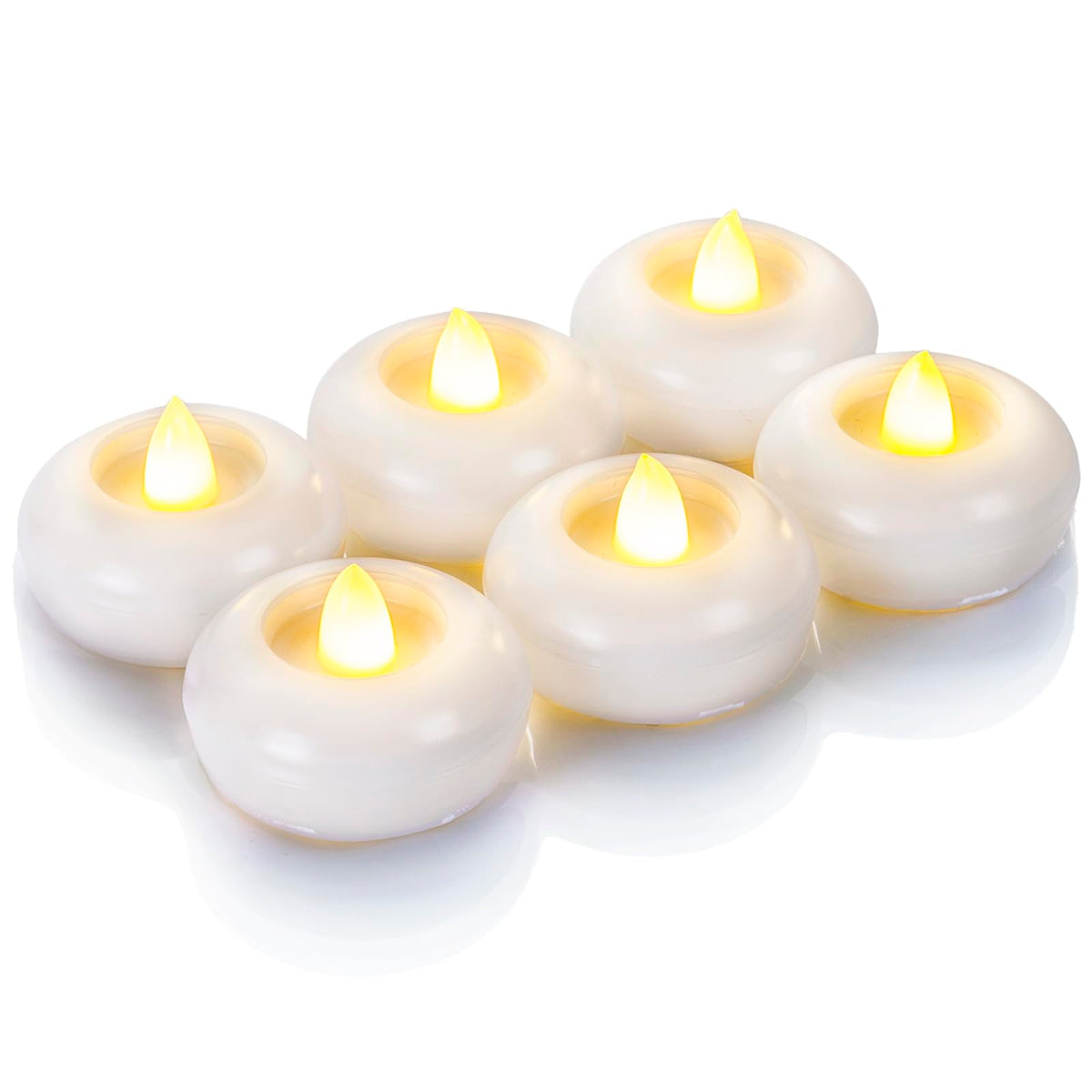 Homemory 2 Flameless Led Floating Candles, 200 Hour Plastic Battery Operated Flickering Waterproof Tealights For Cylinder Vases, Centerpieces At Wedding, Party, Pool, Holiday (6 Pack, White Base)