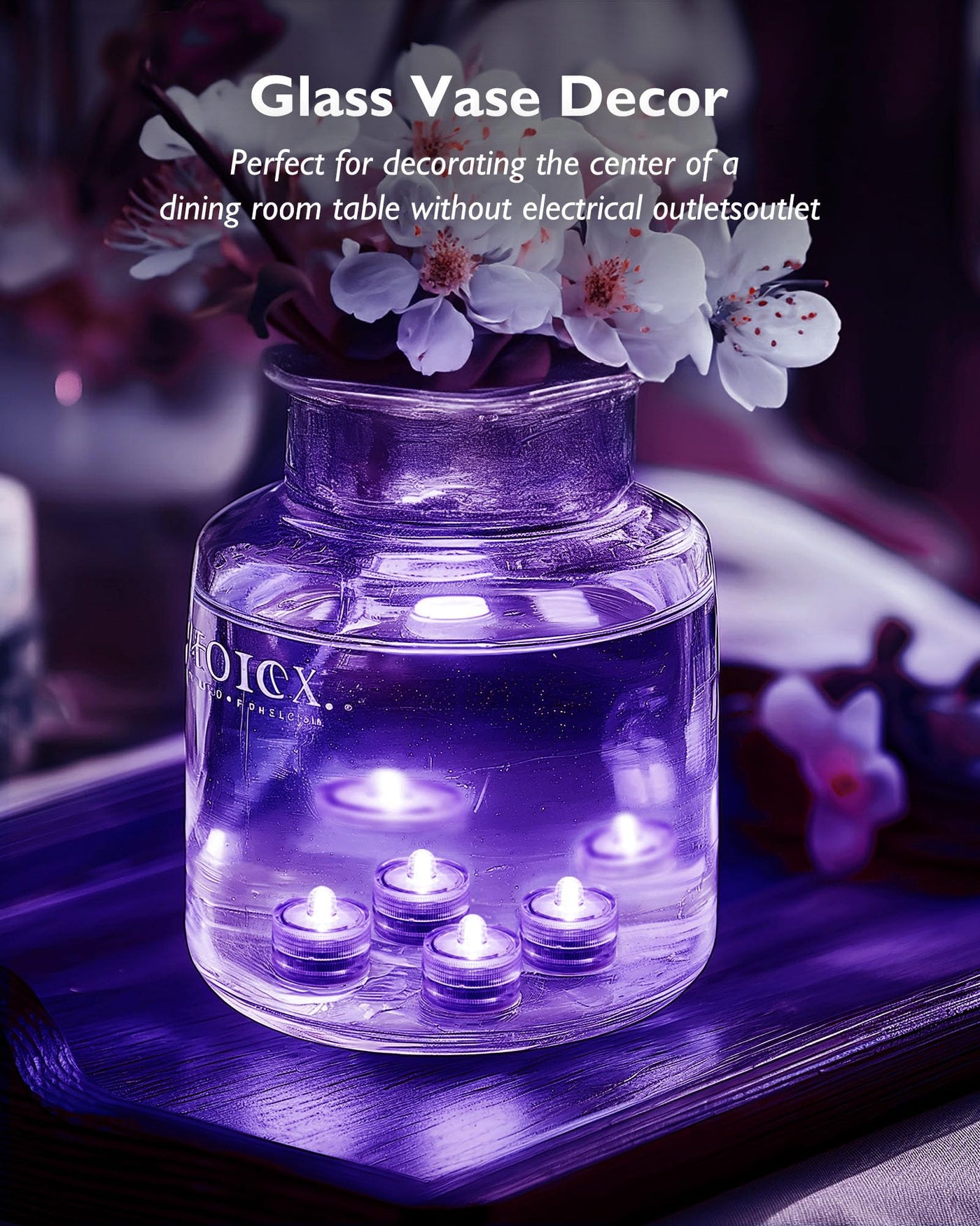Homemory 24Pcs Mini Submersible Led Lights, Waterproof Small Tealight Candles,Battery Operated Underwater Efx Light For Vase,Pool Pond,Halloween Lantern Decor-Purple