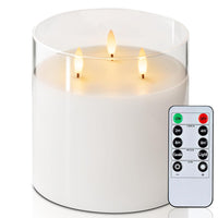 Homemory 6X6'' Extra Large Flameless Candle With 3 Wicks, Glass Led Pillar Candle, Real Wax Battery Operated Candle With Remote