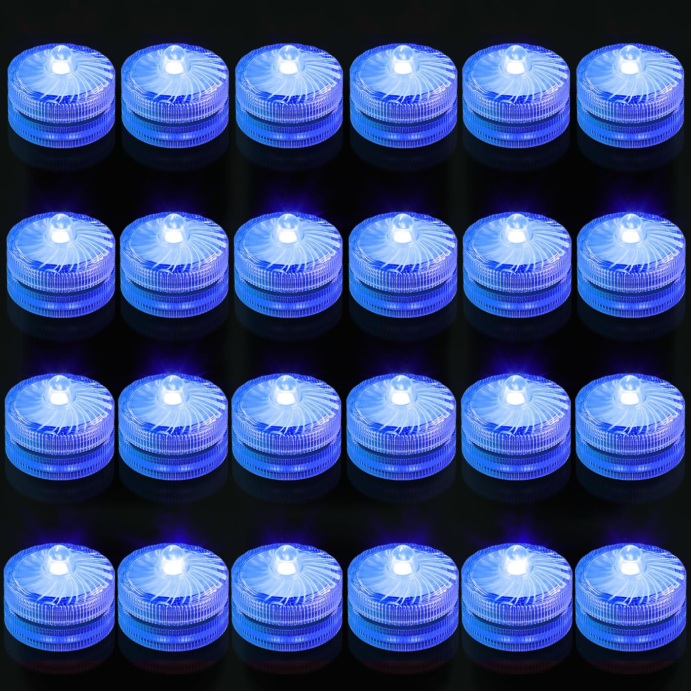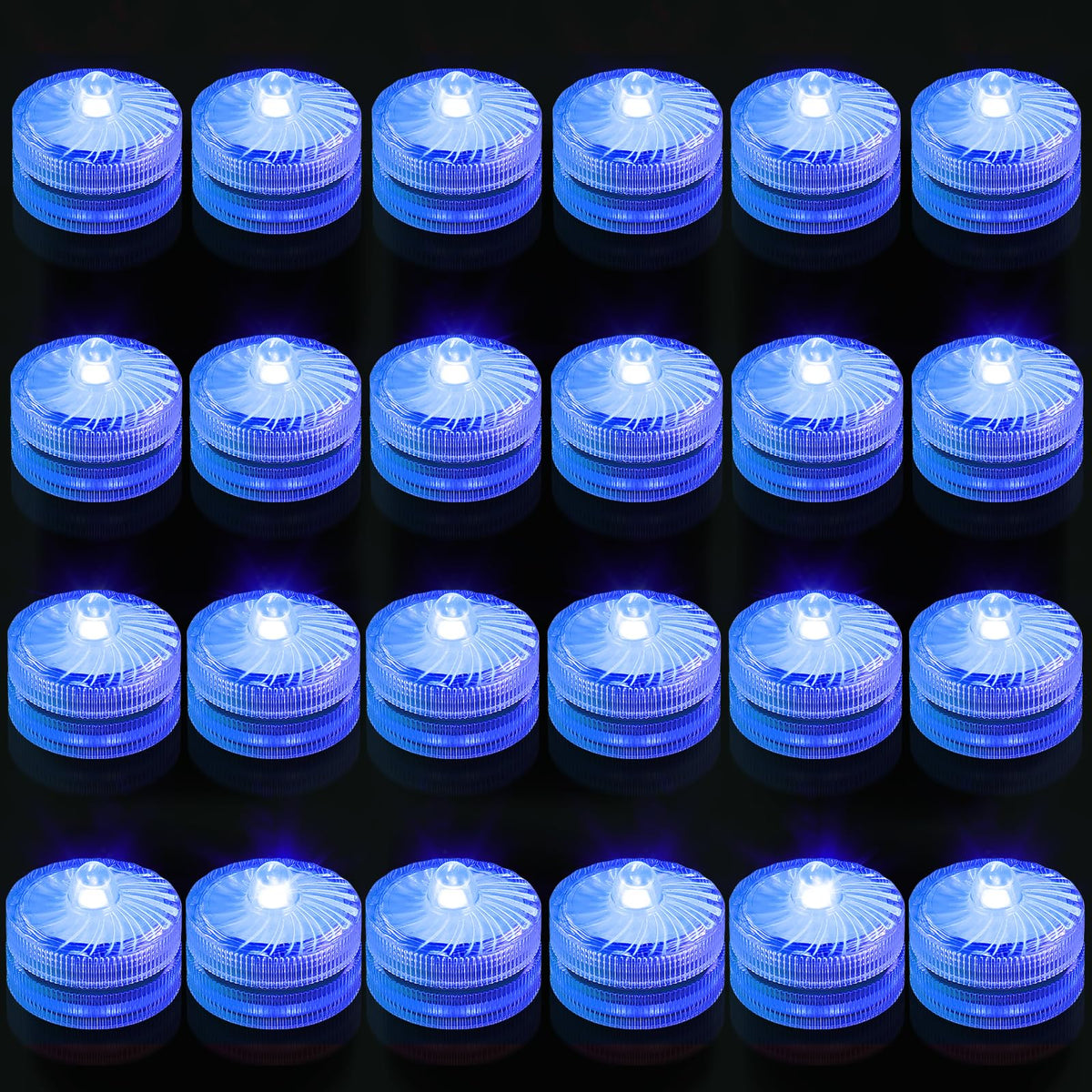 Ip68 Waterproof: The Submersible Led Lights Are Ip68 Waterproof Design, Made Of High-Quality Abs Material And A Sealed Round Silicone Ring, It Could Be 100% Waterproof By Screwing The Lights Tightly.Can Be Used In The Hot Tub, Pond, Pool, Fountain, Waterfall, Fishtank, Vases. | Battery Powered: Our Waterproof Led Lights Are Powered By 2 Batteries (#Cr2032). With A Working Time Of Up To 100 Hours, It Lasts Longer Than Normal Batteries And Can Burn Almost 5 Consecutive Days. | Safety And Operation: Blue Led Tea Lights, Flameless, No Burning Odor, No Fire Hazard,Wear-Resistant, Anti-Fall, No Cracking.Safe For Kids, Pets, Seniors. Prior To Use: Unscrew Each Light To Remove Plastic Battery Protector Tab. | Wide Application: Package Contains 24 Packs Blue Submersible Led Lights,Easy To Take And Fit Anywhere,Suitable For Halloween, Thanksgiving, Christmas, Wedding Centerpieces, Valentine'S Day, Party, Date, Outdoor Garden, Home Decorations. | Customer Service: Your Satisfaction Has Always Been Our Top Priority. If You Are Unsatisfied With Blue Mini Led Lights, You Can Return It.
