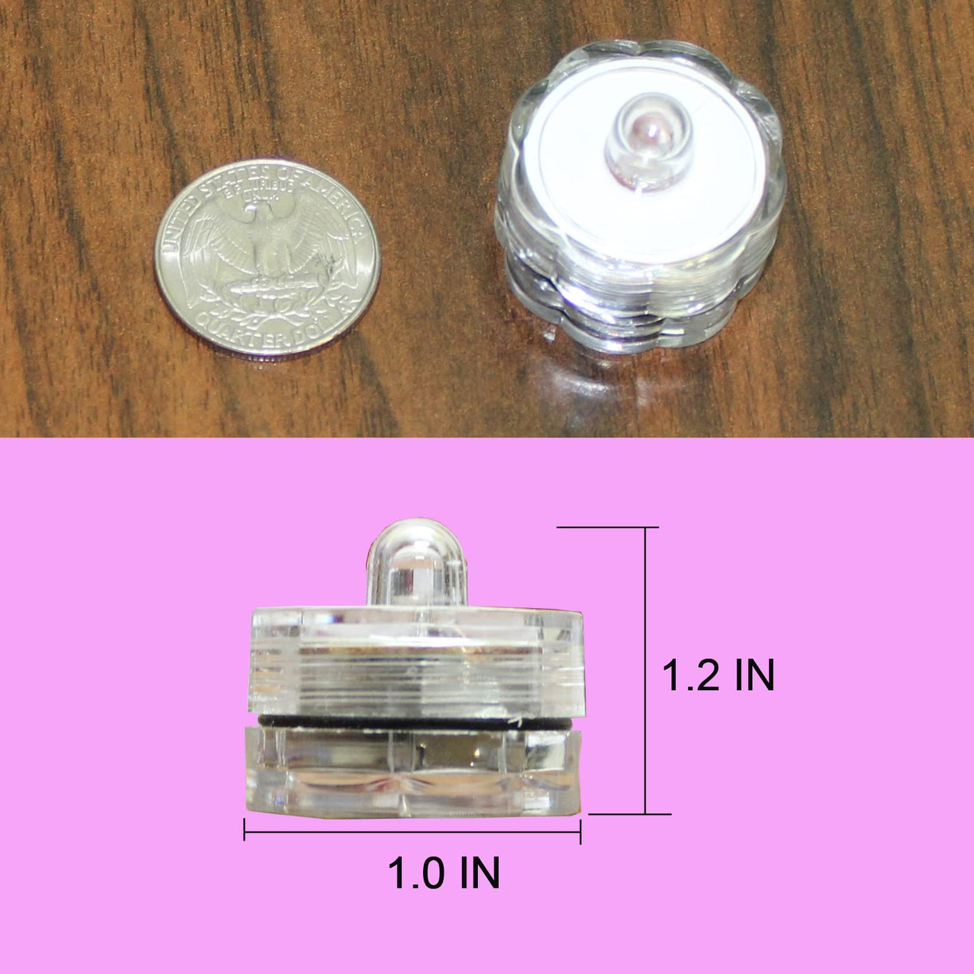 Q: What are the dimensions of the JYtrend Bright LED Floral Tea Light Vase Submersible Lights?A: The dimensions of each light are 1.2 x 1.2 x 1.0 inches, making them compact and easy to fit in various decorative arrangements.