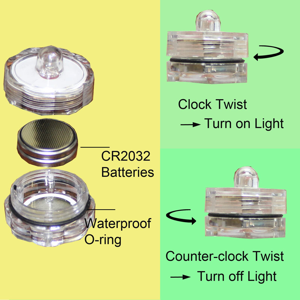 Extremely Affordable Mood Lighting For Special Events, Wedding, Party | Soft Glowing Leds Are Safely Waterproof | Reusable. Light Come With Replaceable Batteries | Tiny Enough To Fit Anywhere For A Touch Of Color | Easy Twist On/Off + Simple Battery Change. Battery Last 30-70Hours | Dimensions Of The Light: 1.2X1.2X1.0 Inch
