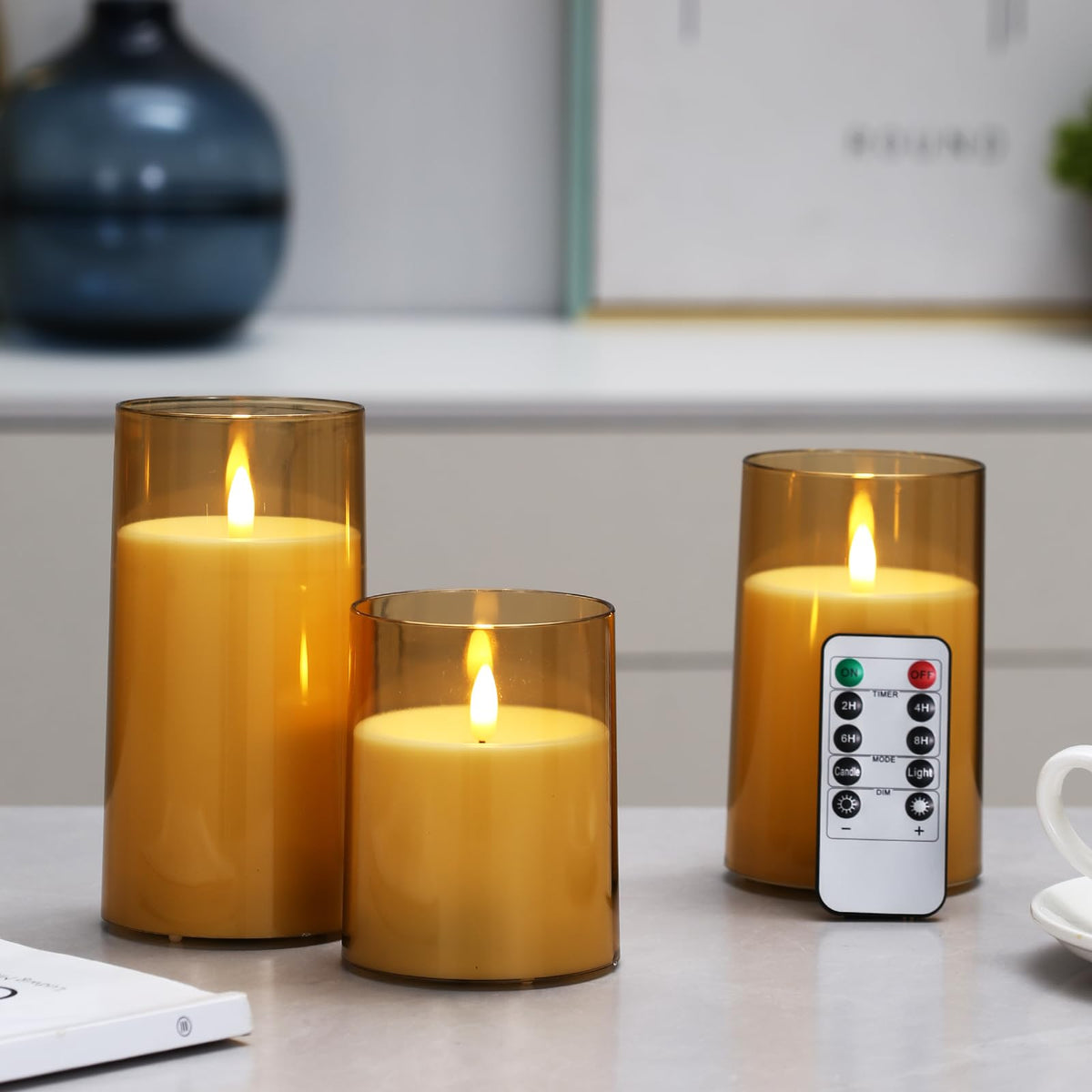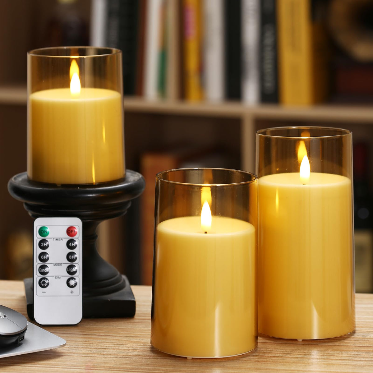 Q: How do I operate the remote control for the flameless candles?A: The included 10-key remote control allows you to operate the candles from up to 18 feet away. You can easily turn them ON/OFF, change light modes, adjust brightness, and set timers for 2, 4, 6, or 8 hours.
