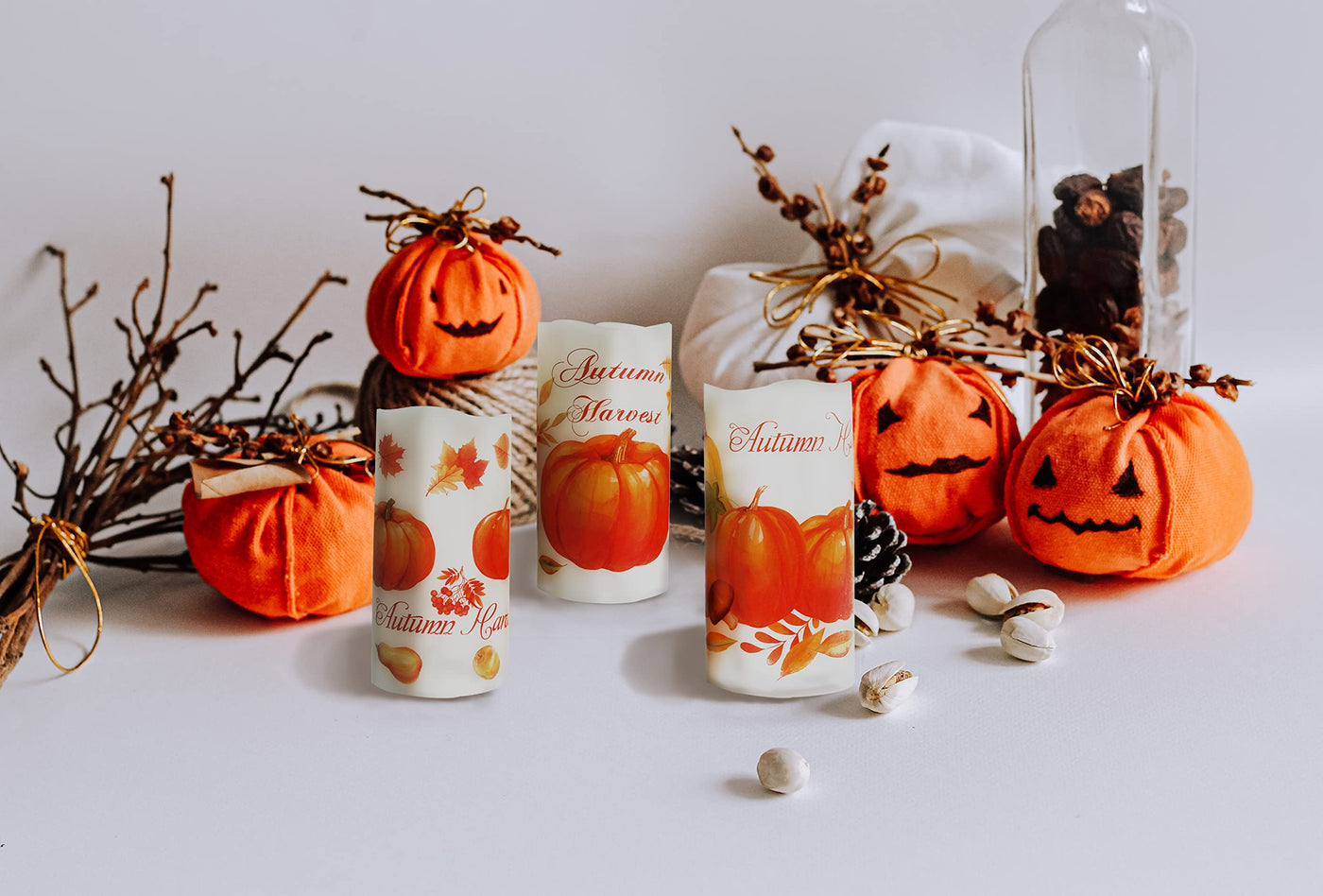 Lordearon Fall Pumpkin Flameless Candles Real Wax Led Candles Thanksgiving Decor Battery Operated Thanksgiving Pillar Candles Wi