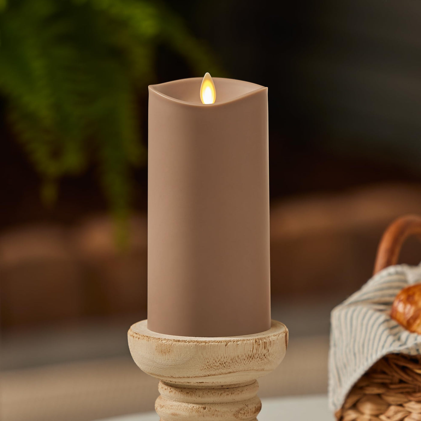 Luminara Timeless Taupe Outdoor Flameless Candle Moving Flame Led Pillar Battery Operated Lights For Outdoor Decor Premium Plast