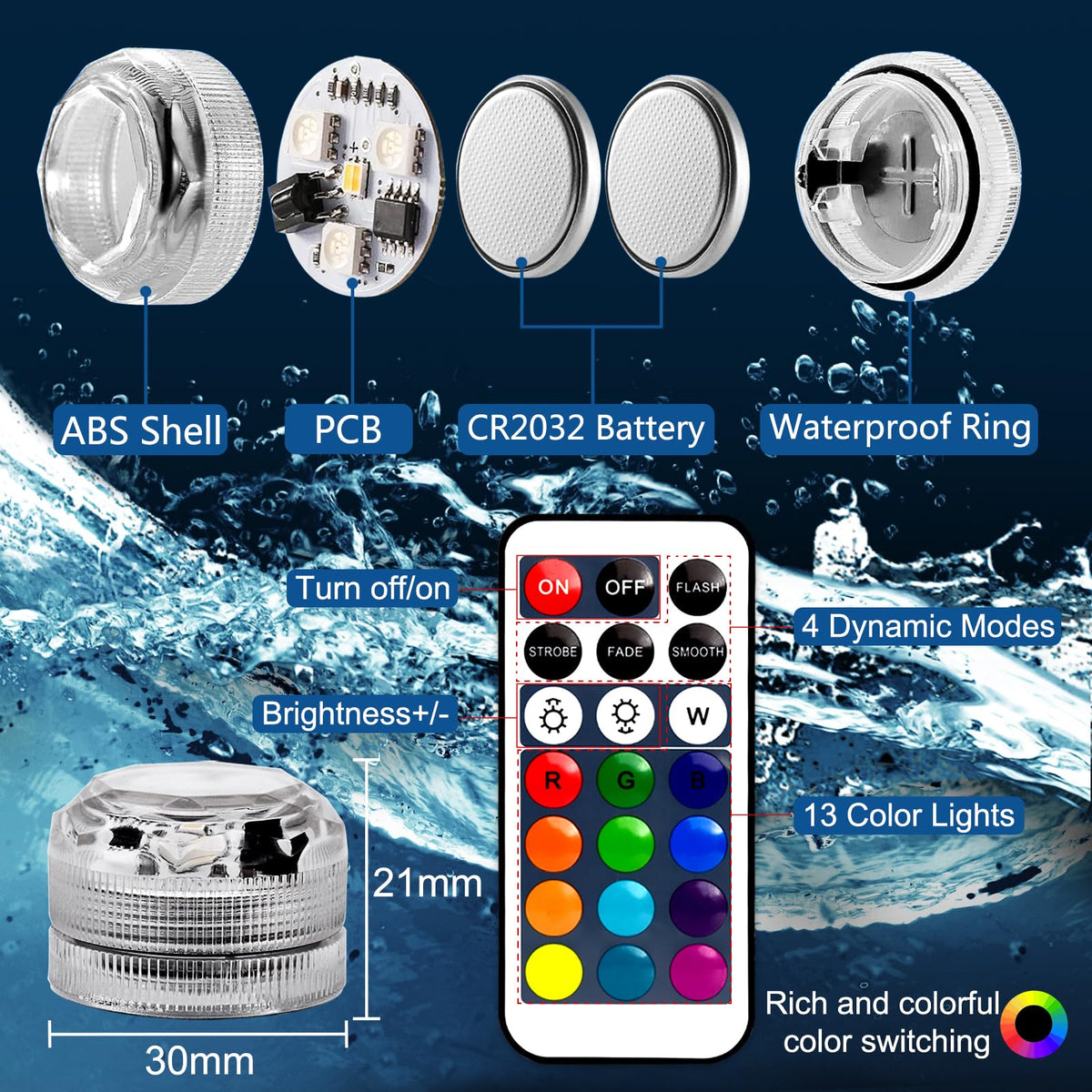 Super Bright Illumination The Submeisible Tea Lights Are Perfect Decoration For Birthday Parties, Wedding, Anniversary, Valentine'S Day, Halloween And Christmas Etc. Daily Decorative Lighting It Could Also Be Use For Flower Arrangement, Table Settings, Design Props, Ice Sculptures And Crystal Vases, Which Make You Stay In A Good Mood. Good Paper Lantern Lighting The Light With A Hanging Hook On The Back, You Can Hang Them On The Paper Lanterns' Wire Easily. Superior Underwater Lighting Just Put It Into The Water And Enjoy Endless Fun! Ponds, Swimming Pools, Fish Tanks, Aquariums, Hot Spring, Bathtub, Fountain...