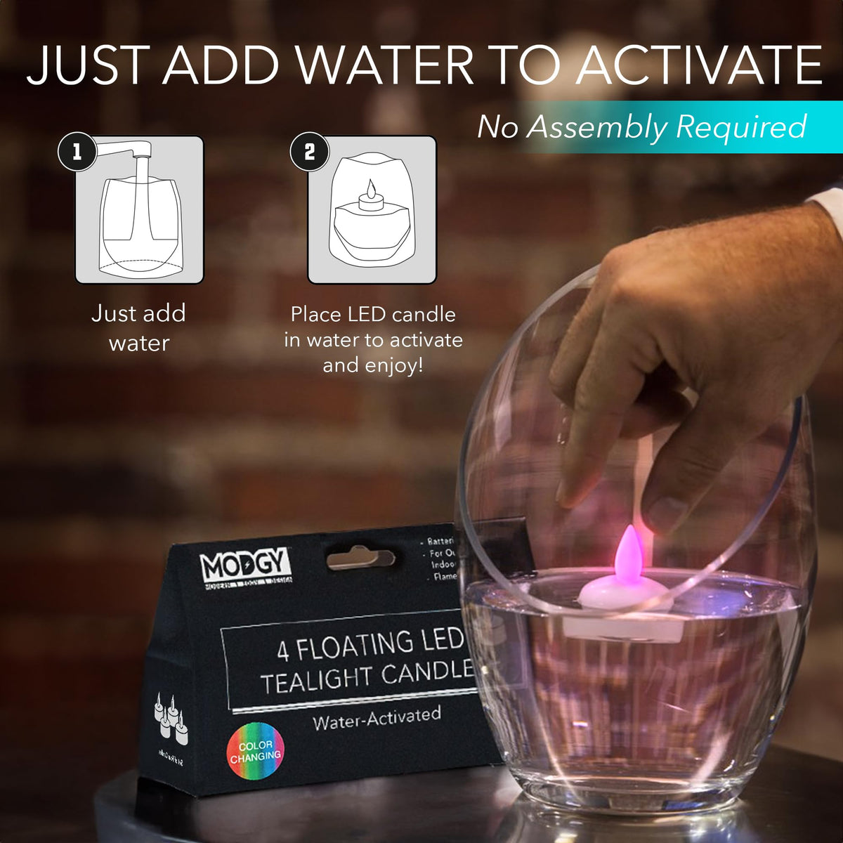 Modgy Led Floating Tealight Candles Flameless Battery Operated Flickering Light Candle, Color Changing, Water Activated, Multi C