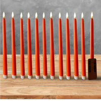 Ni-Jasw Orange Flameless Taper Candles With Remote Set Of 12Specificationsize:28Cmx2.1Cm = 11 Inch X 0.82 Inchpackage Includes: 6 Pieces Battery Taper Candles, 1 Remote Controlbattery Type:Each Led Taper Candle Takes 2 Aaa Batteries(Not Included), Lasting Over 200 Hours, Remote Control Takes 1 Cr2025 Coin Cell( Included)Features10 Key Remote Controlled Candles - You Can Use Remote To Control Power, Set 2/4/6/8 Hours Timer, Set Flickering Or Static Flame Effect And Adjust Brightness, Max Remote Range 20 Ftrealistic & Safe - It Is Hard To Tell The Difference From Real Candles, Giving Off Warm White Glow, Great Alternative To Real Candles And Safe, No Fire-Risk, No Drips, Especially Great For Kids Or Pets, Great Decoration For Home, Halloween Decorative Candles, Party, Wedding And Also A Wonderful Gift.