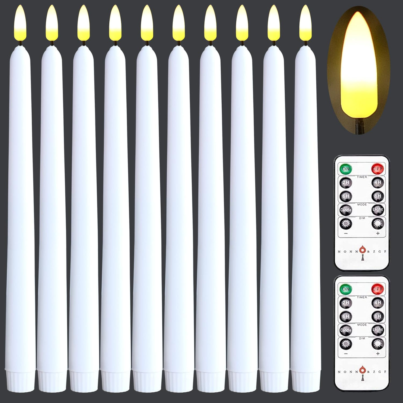 Nonno & Zgf 10 Pack White Flameless 11'' Wax Coverd Taper Candles With 2 Remote/Timer, Led Battery Bright Flickering Candle For
